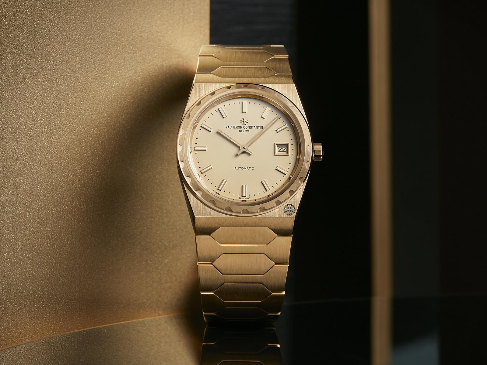 ヴァシュロン・コンスンタンでは、創業222周年を記念して1977年に222本限定で登場した「222」を復刻。新たに「ヒストリーク・222」として発表した。コンパクトでスリムなケースにブレスレットが一体となった堅牢でスポーティなスタイルと、大胆な切り込みを入れた高さのある特徴的なベゼルを継承。ブレスレットの六角形の中ゴマや、バーインデックスとバトン型の針などもオリジナルに準拠している。ただし、ムーブメントは毎時2万8800振動の高精度「キャリバー2455/2」に変更。シースルーのケースバックから「222」の大きなロゴと、ベゼルと同じ切り込みをモチーフにした自動巻きローターが見られる。針とインデックスには蓄光式夜光を塗布。夜間の視認性向上はもちろん、ライムグリーンの発光を楽しめる。ブレスレットの連結ピンを隠して装着感を向上するなど、現代の技術で細部を丁寧にブラッシュアップ。ちなみに、ケース右下(5時位置)にあるマルタ十字はパラジウムを15%含むホワイトゴールド製。