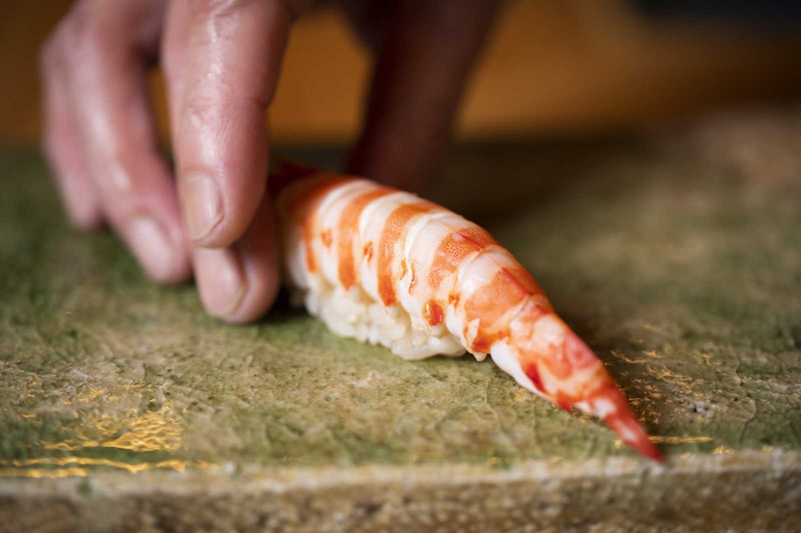 シャリは粒の大きい宮城産の「ササニシキ」を“アルデンテ”に炊き上げて使用。長期熟成で旨味が豊富な赤酢を合わせた“赤シャリ”と優しい味わいの“ロゼシャリ”を用意し、マグロなどの脂がのったネタには赤シャリを、淡白な白身にはロゼシャリをといった具合に使い分ける。