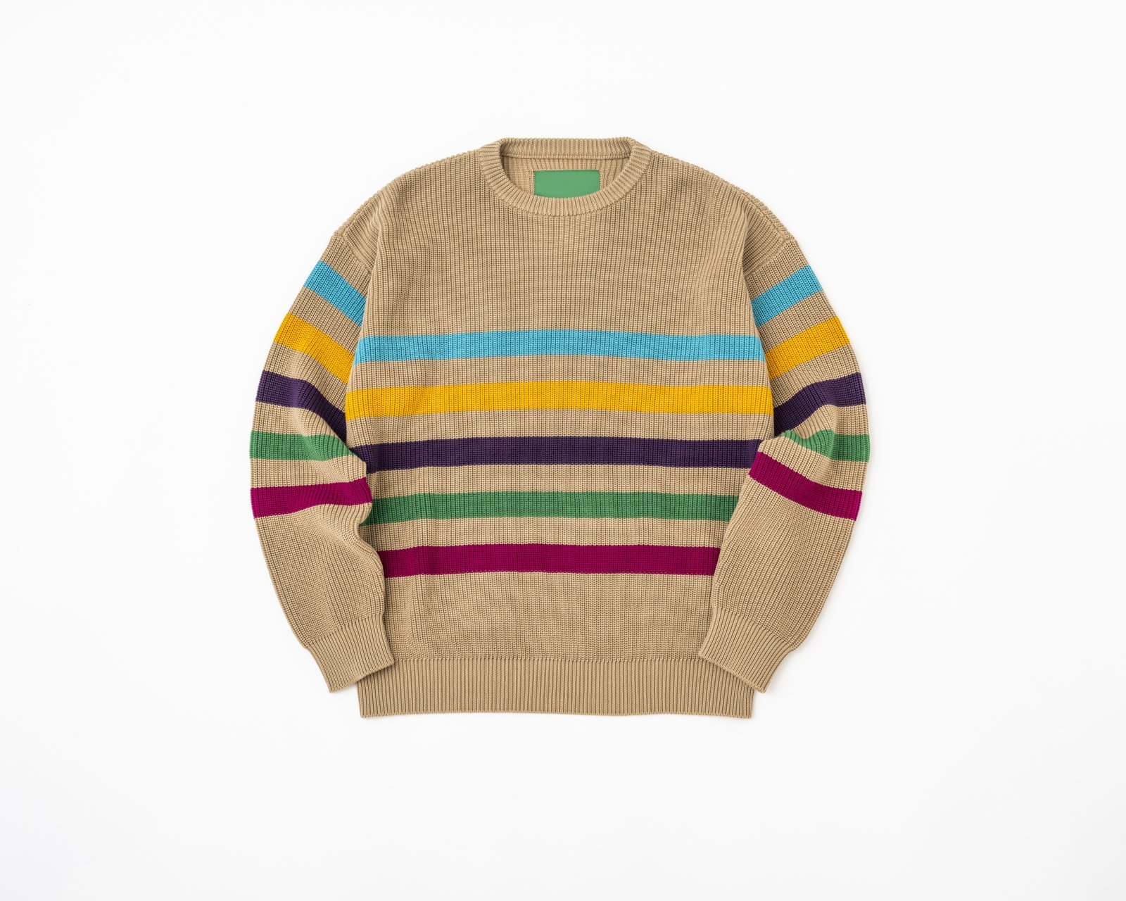 リサイクル素材やオーガニック素材を使うなど環境に配慮した「サステナブル コレクション」を展開するエンポリオ アルマーニ。今シーズンは「サーファー」をテーマに、ネオンカラーなど鮮やかな色彩による波モチーフやボーダーなどの大胆なグラフィックデザインが特徴だ。着心地にこだわったスポーティなアイテムをラインアップするとともに、商品パッケージにもコンポスタブル(堆肥化可能)認証を受けた素材を用いるなど、さまざまなアプローチで環境問題に向き合っている。
