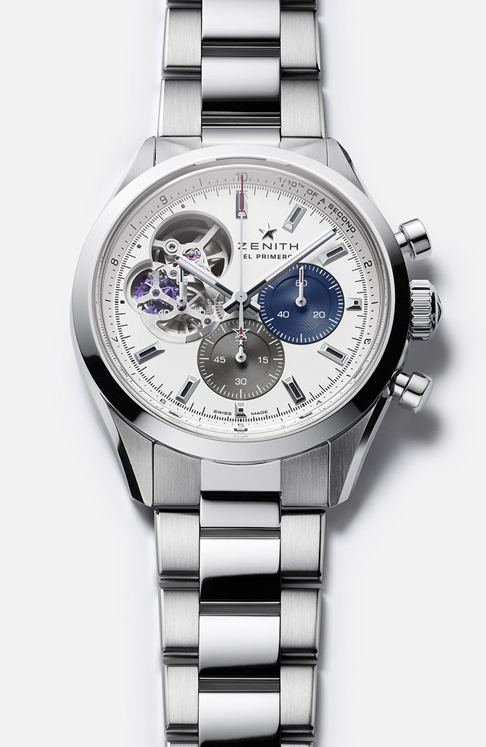 2019年に発表された「エル・プリメロ」の次世代ムーブメントを搭載。オリジナルモデル(1969年)の3色ダイヤルを継承しながら、10時〜11時位置の大きな窓から毎秒10振動のハイビート・ムーブメントが視認できる。クロノ針はダイヤルを10秒で一周する。