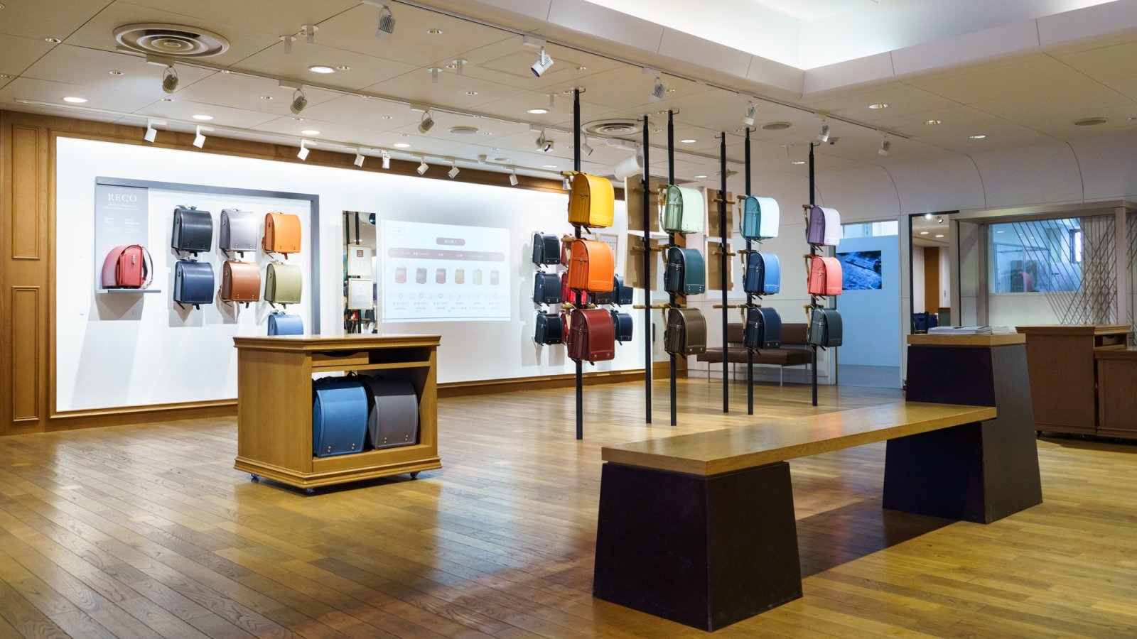店の奥がランドセル工房で、職人さんたちが働いている様子を眺められます。