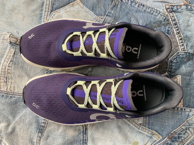 翌週、たまたま立ち寄った近所のスポーツショップで同じ「クラウドモンスター」を発見した。すぐに試着すると予想通りの快適な履き心地。まるで走れと言わんばかりに前傾斜している。写真でははっきりしていないが、シューレース部分が内側にオフセットしてデザインされ、アッパーの圧迫感もない。パープルのカラーも意外と派手ではない。オン愛用者としては、これは買わねばならないとすぐに購入を決断した。