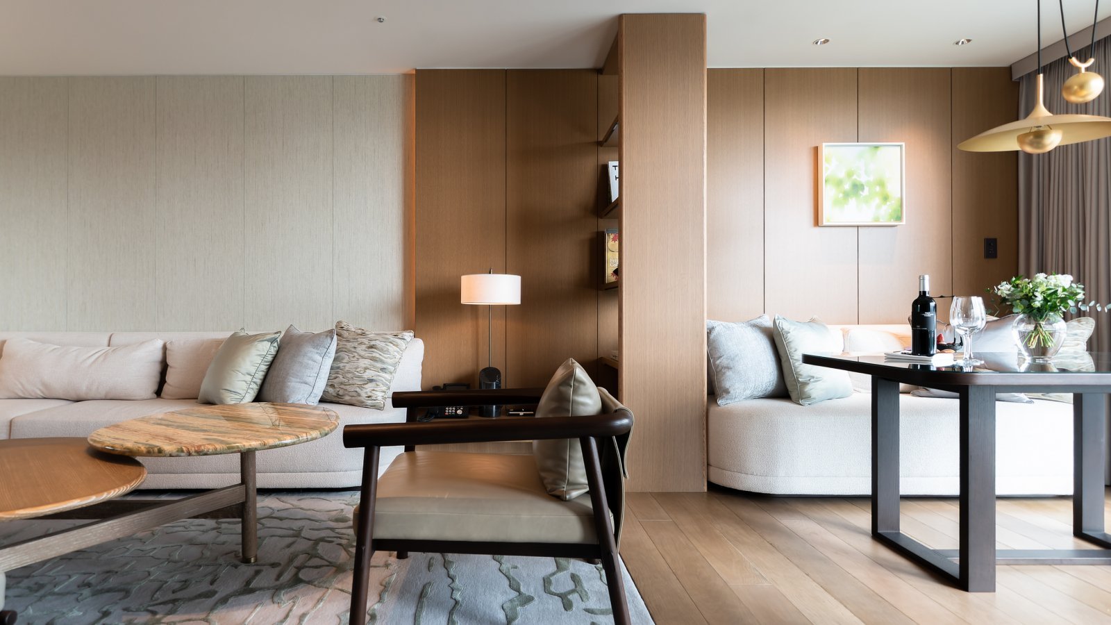 旅先でのホテル宿泊という非日常の演出より、家族で暮らす日々の延長線上にあるくつろぎが提案された空間でした。