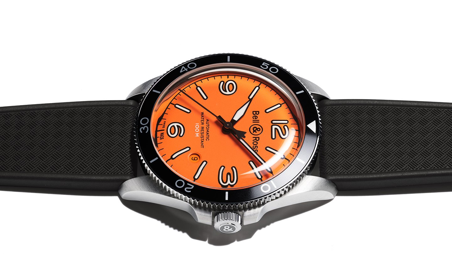 ボックス型のサファイアクリスタル風防など、レトロな雰囲気が漂うスタイルの一方で、ダイヤルカラーは鮮烈なオレンジ。時計のダイヤルは年々カラフルになってきたが、それでも周囲にセンセーションを巻き起こしそうな新作がベル&ロスから登場した。航空機の計器盤にインスパイアされた角型ケースの「BR 01」コレクションで世界的にブレークしたブランドだが、この新作「BR V2-92 ORANGE」はクラシカルな丸型。同ブランドの歴史と発展を読み解くことができるモデルなのである。