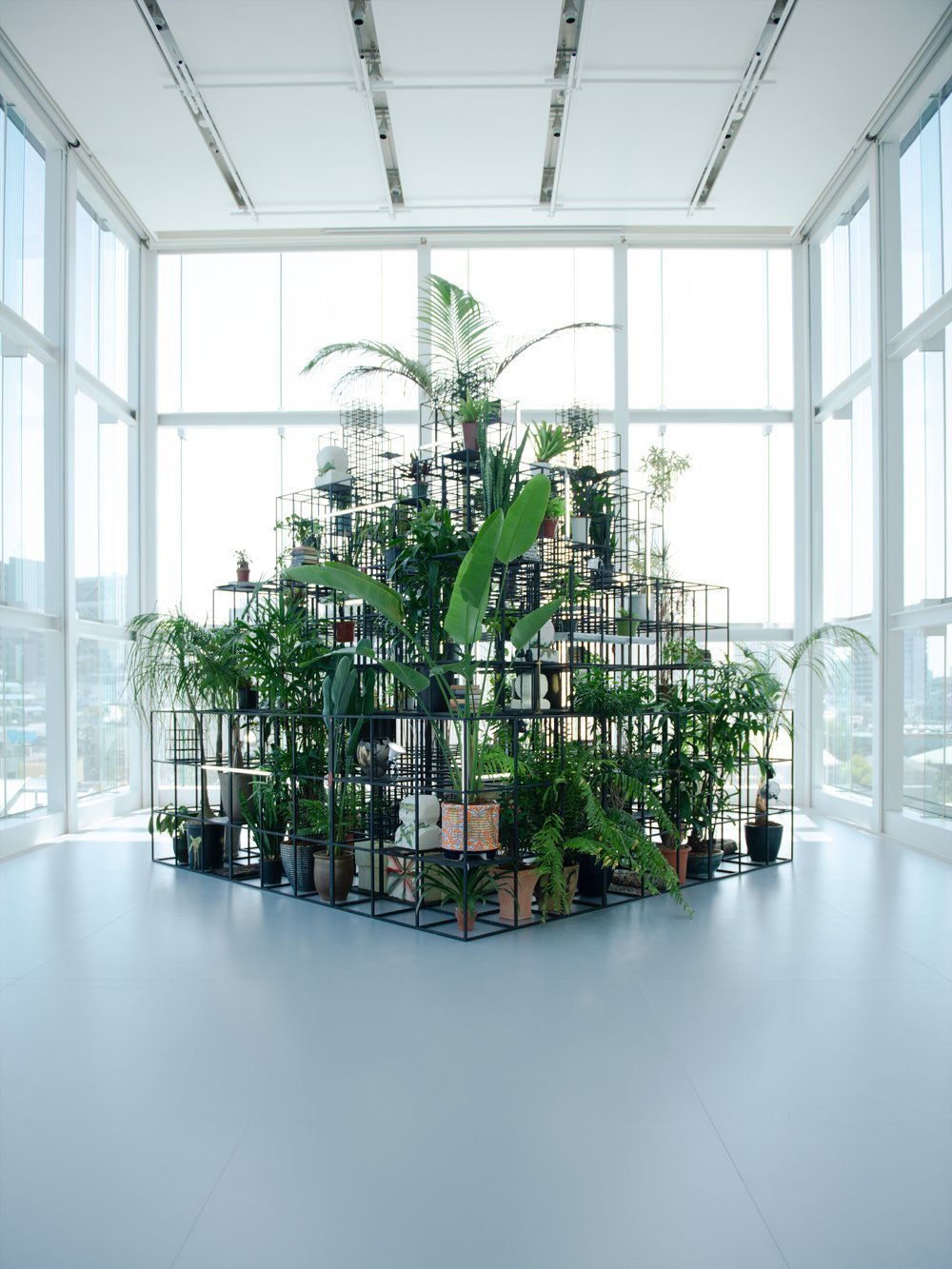 ルイ・ヴィトン表参道ビルの7階に上がると、自然光の降り注ぐ空間に、豊かな緑が目に飛び込んでくる。アフリカ系アメリカ人アーティスト、ラシード・ジョンソンのインスタレーション作品『プラトー』。フランスの哲学者であるジル・ドゥルーズと精神科医のフェリックス・ガタリの共著『千のプラトー 資本主義と分裂症』に描写された「リゾーム」の概念にインスパイアされた作品だ。