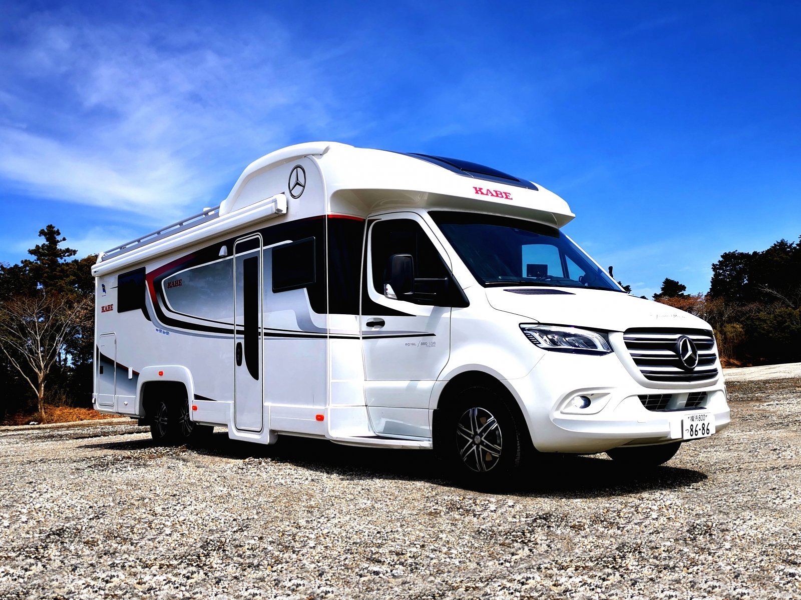 このロイヤルx880はメルセデス・ベンツの商用車であるスプリンターをベースにキングサイズのベッドを備え、シャワーにトイレ、システムキッチン、リビング、天井を下げて使用できるエクストラベッドまである。さながら走る高級マンションのモデルルームで、何も我慢しない暮らしが、旅行しながらできるってわけ。