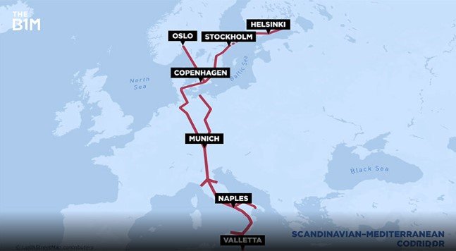 スカンジナビア半島と地中海を結ぶ回廊は、欧州経済にとって極めて重要な南北軸に相当する。北はフィンランドとスウェーデンから、南はマルタ島へと延びるこの回廊には、デンマーク、ドイツ北部・中部・南部のほか、北イタリアの工業中心地と南イタリアのいくつもの港が含まれている。
