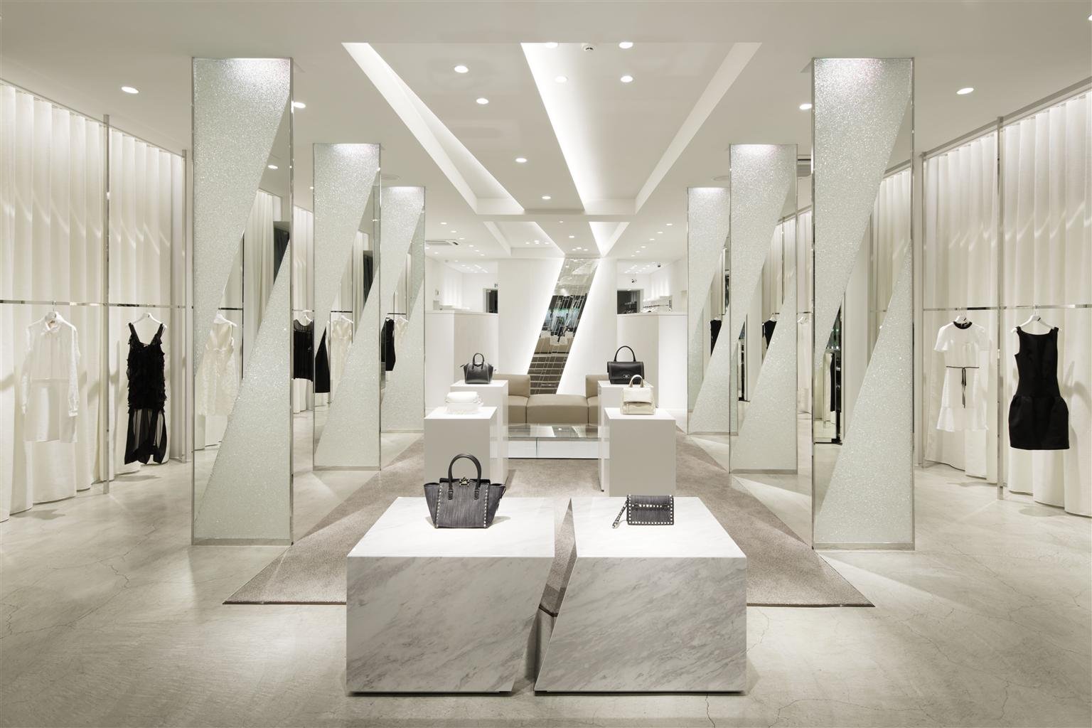 市松が舞っているかのような天井が印象的なダイニング、既存要素を残しながら現代の素材を用いて刷新した百貨店など、伝統と革新が融合した空間づくりを行う。