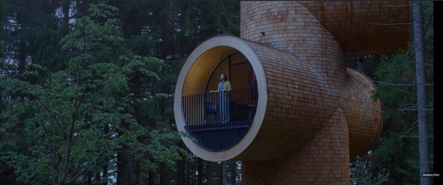 このツリーハウスを見ると、森の中に違和感なく溶け込みつつも、どこかコミカルな印象を受けるだろう。