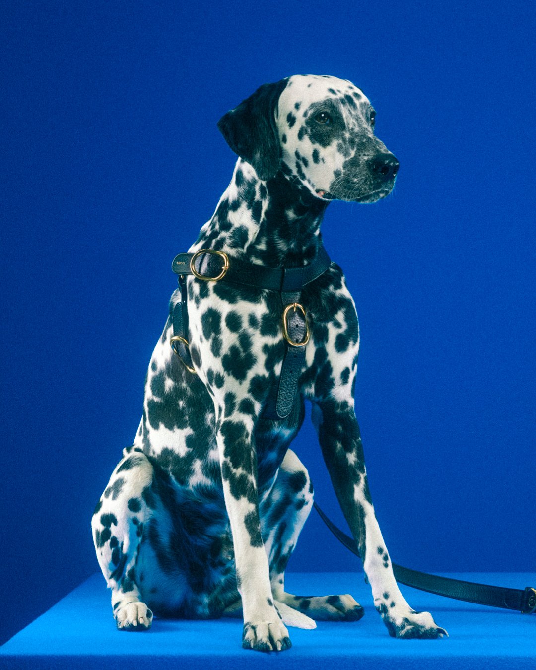 アイテムは愛犬の散歩に活躍するハーネスやリード、ペットとの移動や旅行に欠かせないキャリーバッグ、日々の生活空間を彩るフードボウルやミニサイズのベッド(受注生産)など。厳選されたレザーやキャンバス素材に、インターロッキングGモチーフやスタッズなどのディテールがアクセントを添える。またおしゃれなペットのためのウェアには、ポロシャツ、Tシャツ、ニットウェア、コートがラインナップ。どのウェアもグッチらしい鮮やかなカラーと遊び心あふれるモチーフがあしらわれ、ペットとお揃いのルックを楽しむこともできる。