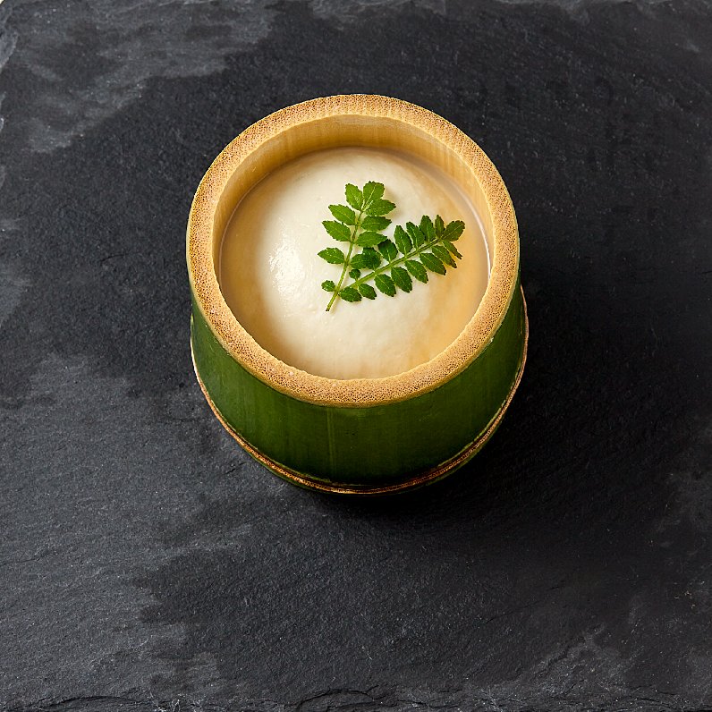 宮城県仙台市秋保(あきう)で江戸末期から続く「太田とうふ店」の看板商品。竹筒に詰めるおぼろ豆腐は、宮城県だけで生産されている高級大豆・ミヤギシロメを100%使用。秋保の清らかな水をふんだんに使い、昔ながらの製法で手づくりしている。ひと口目はなにも付けずに、鼻に抜けるほのかな竹の香りと大豆の風味を楽しみたい。途中から塩を付けるとより大豆の甘味が引き立つ。しっかりとしたコクがあるので、酒のつまみにも最適だ。
