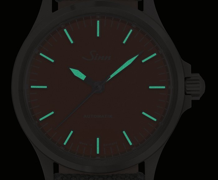 今回のカラーダイヤルのベースとなった「556シリーズ」も、計器としての仕様を備えたパイロットウォッチやナビゲーション・コックピットウォッチを継承。特徴的な剣型の時分針と、ポリッシュ仕上げのアプライド(植字)バーインデックスのコンビネーションによって、昼夜を問わず視認性が高い。さらに、ケースバックとリューズはネジ込み式で、20気圧防水を確保。外気圧が低い環境での負圧耐性も備えているという。