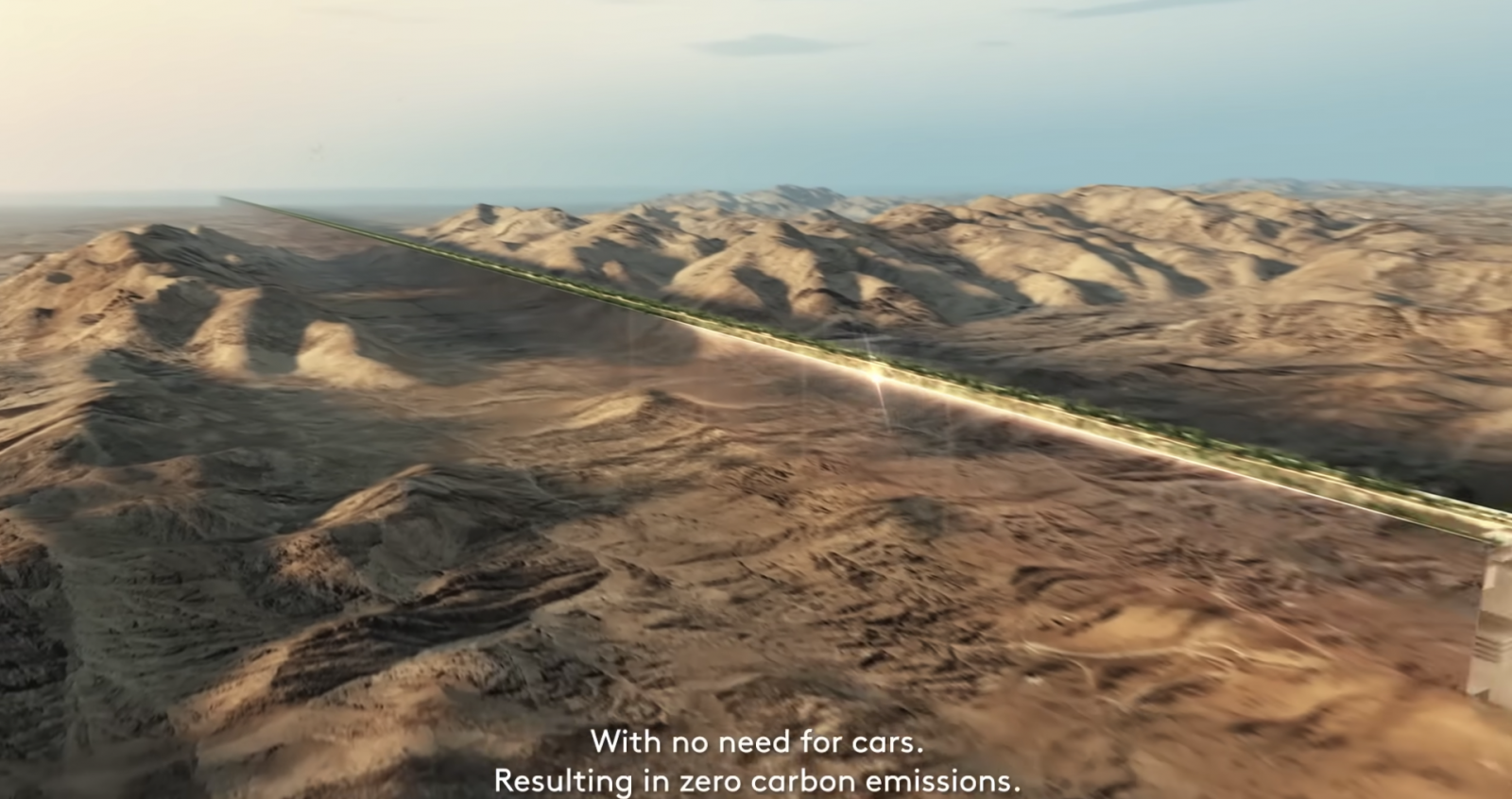 THE LINEは、幅200メートル、長さ170キロメートル。海抜500メートルの高さにある。