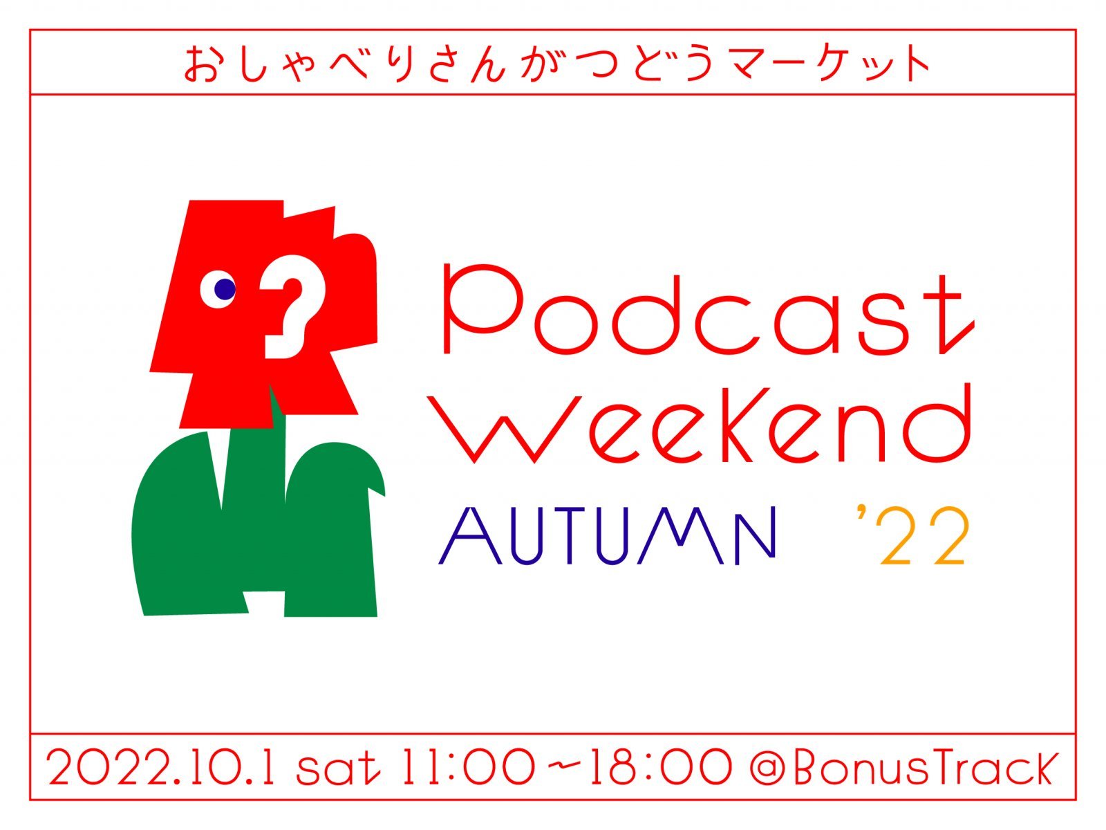 Podcasterたちによるマーケットイベント、Podcast Weekend AUTUMN ʻ22が10⽉1⽇に開催する。開催地は延べ2,000⼈が来場した第1回に引き続き、下北沢のカルチャー芽吹く商店街、BONUS TRACKだ。