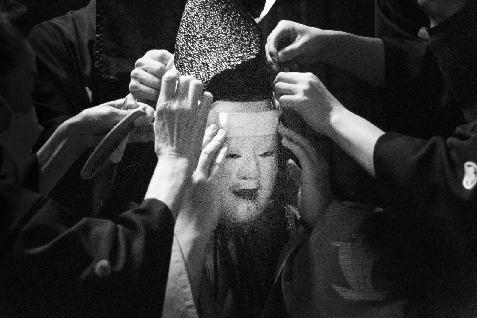 「緊張感が極限に達するのはすべての装束をつけた後、面(おもて)をかけて幕の前に立つところで、だんだんにテンションを高めていく時間というのが、能の始まるなかに存在します」