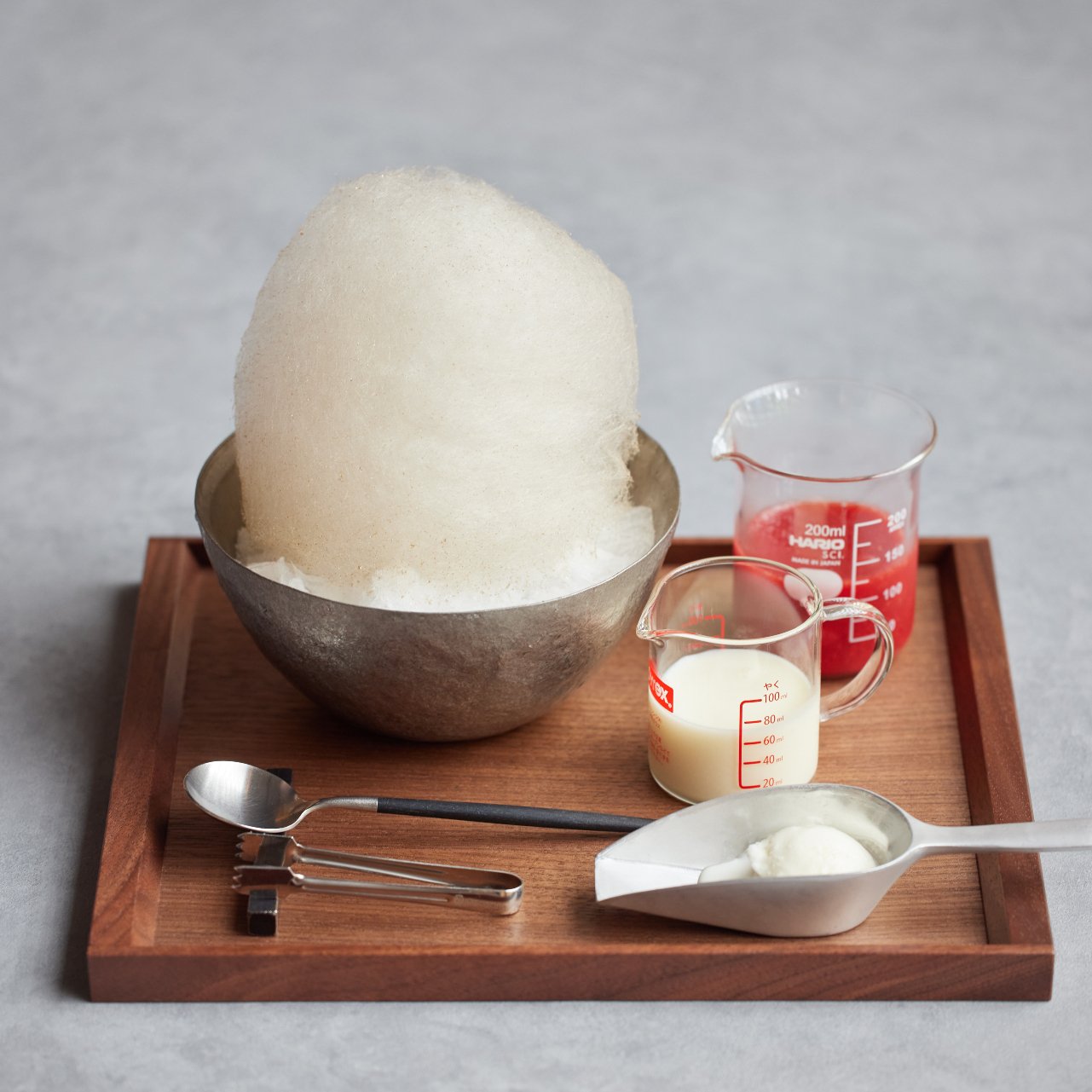 かき氷と綿あめ、ソースとの相性など、さまざまなバランスを考えた末に仕上がった今作。子どもの頃に頬張ったかき氷と一線を画す、まさに大人の夏の味覚だ。