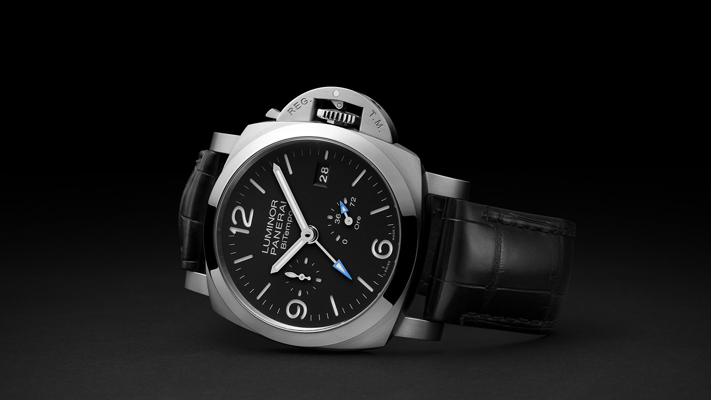 滑らかな曲面で造形されたクッションケースに、厚みのあるベゼルを備えた丸型ダイヤル。パネライ「ルミノール」は、第2次世界大戦中にイタリア海軍特殊潜水部隊が標準装備していたダイバーズウォッチをルーツとしており、いかにも堅牢で機能的なフォルムでありながら、軍用だったとは思えないエレガントな雰囲気が漂う。イタリアの伊達男が放つ洒脱な色気とも言い換えられそうだが、そのエッセンスをデュアルタイムモデルで象徴的に表現した新作「ルミノール ビテンポ」が登場した。