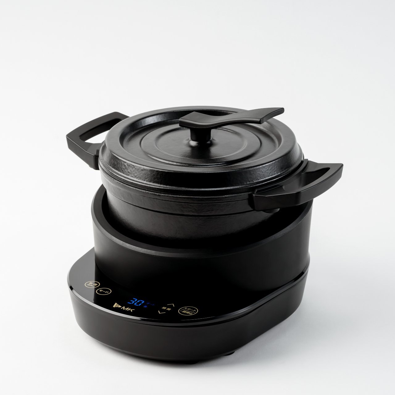 ここに目を付けたのが、長野県千曲市に本社を置くエムケー精工だ。水無し電気鍋「KO TSUI RA ZU(コツイラズ)」は、ずっしりと重い直径20㎝の“本物”の鋳物ホーロー鍋とヒーター部がセットになっており、無水調理を火加減調整なしの“おまかせ”で叶えてくれる。