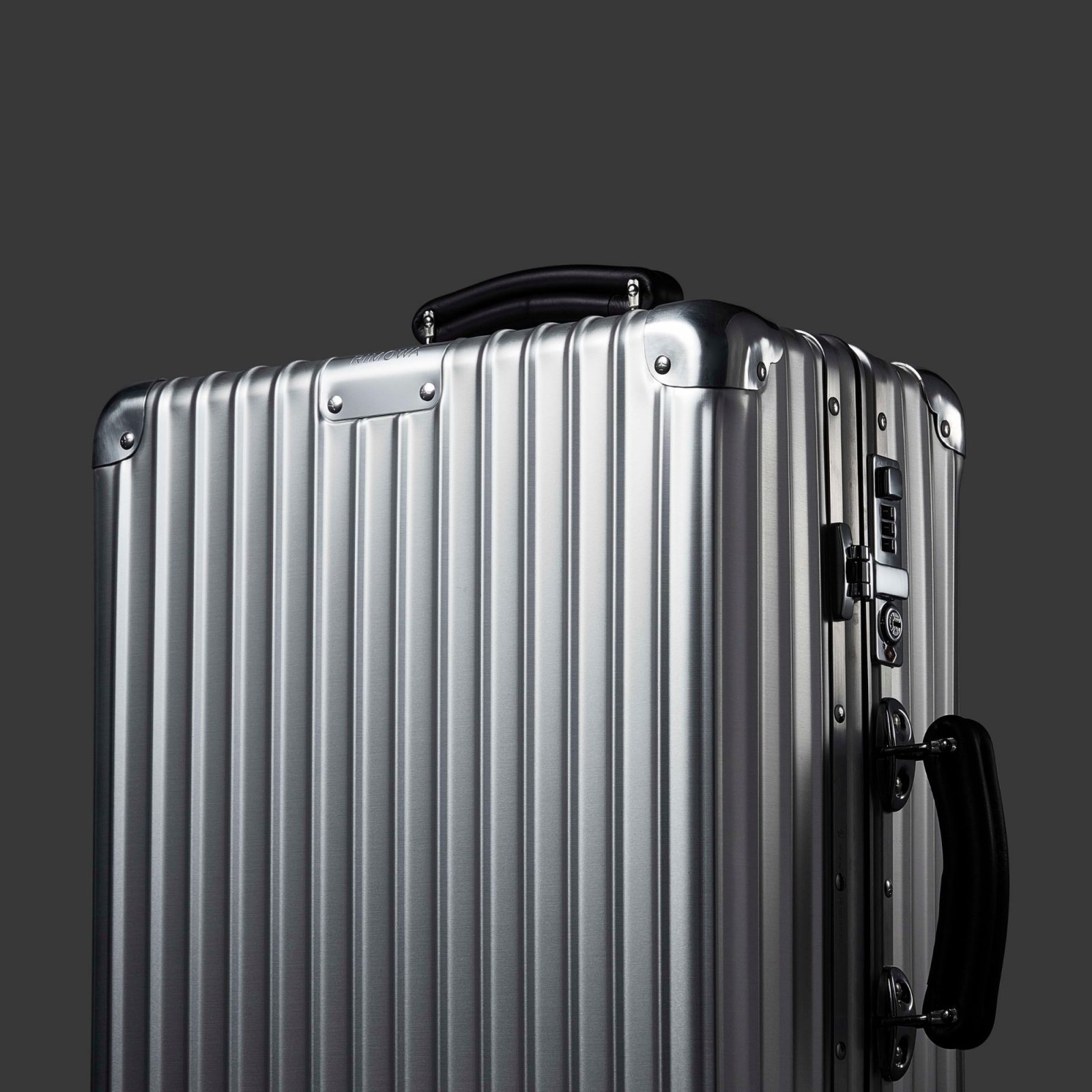 数あるリモワのスーツケースコレクションの中でも、今回紹介するのはリモワの伝統とルーツを感じさせ、航空機の黄金時代にインスピレーションを得た「CLASSIC」というコレクションだ。素材に採用されているのは、リモワ伝統のアルミニウムだが、陽極酸化処理を施した素材が使われている。やや四角ばったシルエットのボディが大きな特長で、骨太な印象を醸し出す。光沢あるアルミコーナーはリベットで留められ、2箇所に付けられた革ハンドルはハンドメイドでつくられている。名前の通りクラシックな印象を併せ持っているのも「CLASSIC」コレクションの特長だろう。
