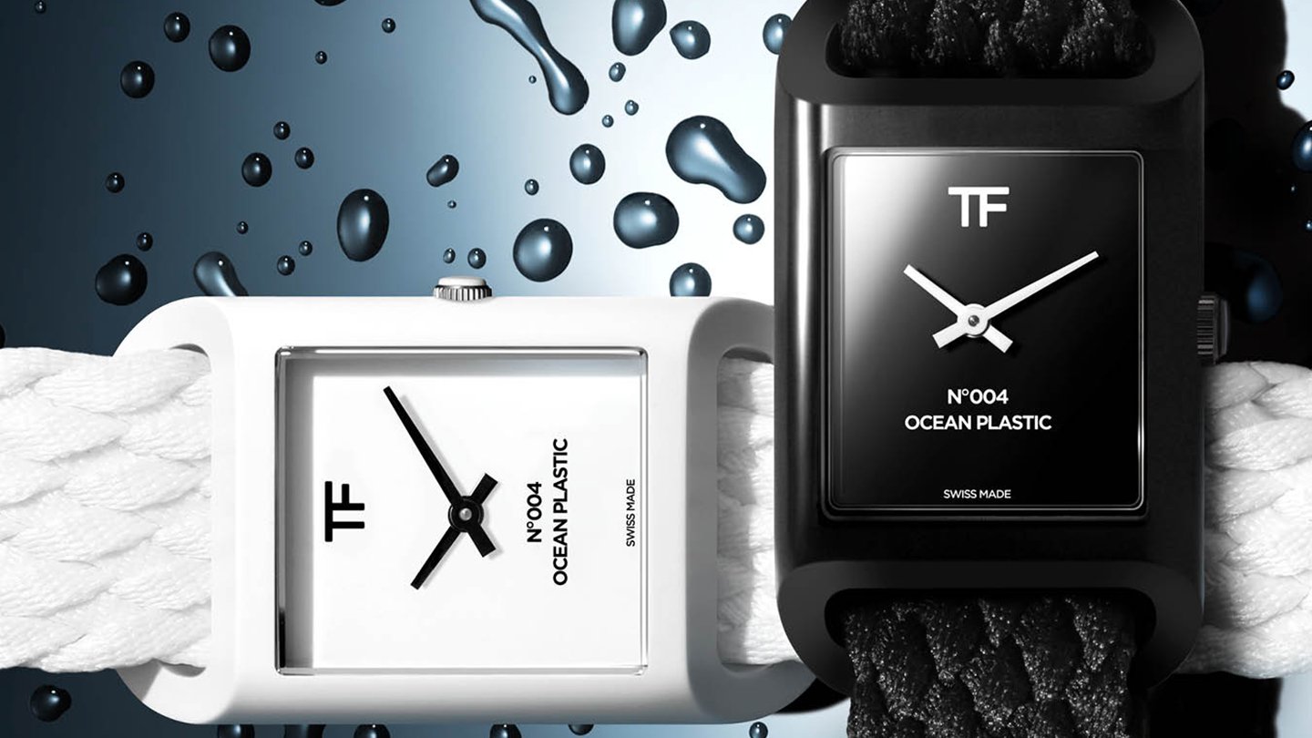 トム フォードは2018年から時計分野に参入。レクタンギュラー(長方形)の「N.001」に続いて丸型の「N.002」を展開する一方で、海洋に廃棄されたプラスチックをアップサイクル(創造的再利用)した「オーシャンプラスチック」 を素材とする新シリーズを2020年に発表。環境の改善・保全に貢献する独自のポジションを急速に確立してきたが、シリーズ第3弾となる「N.004 オーシャンプラスチック」が登場した。