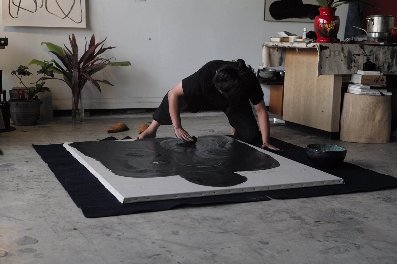 禅僧であり民俗学者でもある祖父を持ち、禅や仏教文化に親しみながら幼少期より書道を始めた新城は、禅や沖縄の精神文化を背景に現代的で型に縛られない自由なスタイルで、伝統的な書に新たな光を当てている。「 tricot COMME des GARCONS 」21AW に作品が起用されたり、2021年には「 HERMES 」制作のドキュメンタリーフィルム「 HUMAN ODYSSEY 」に出演、今年5月には、写真家・石川直樹と共にディレクションを務めるギャラリー「PALI GALLERY」を宮古島にオープンするなど、オールドファッションな書道の枠を越えた活動で注目を集めている。