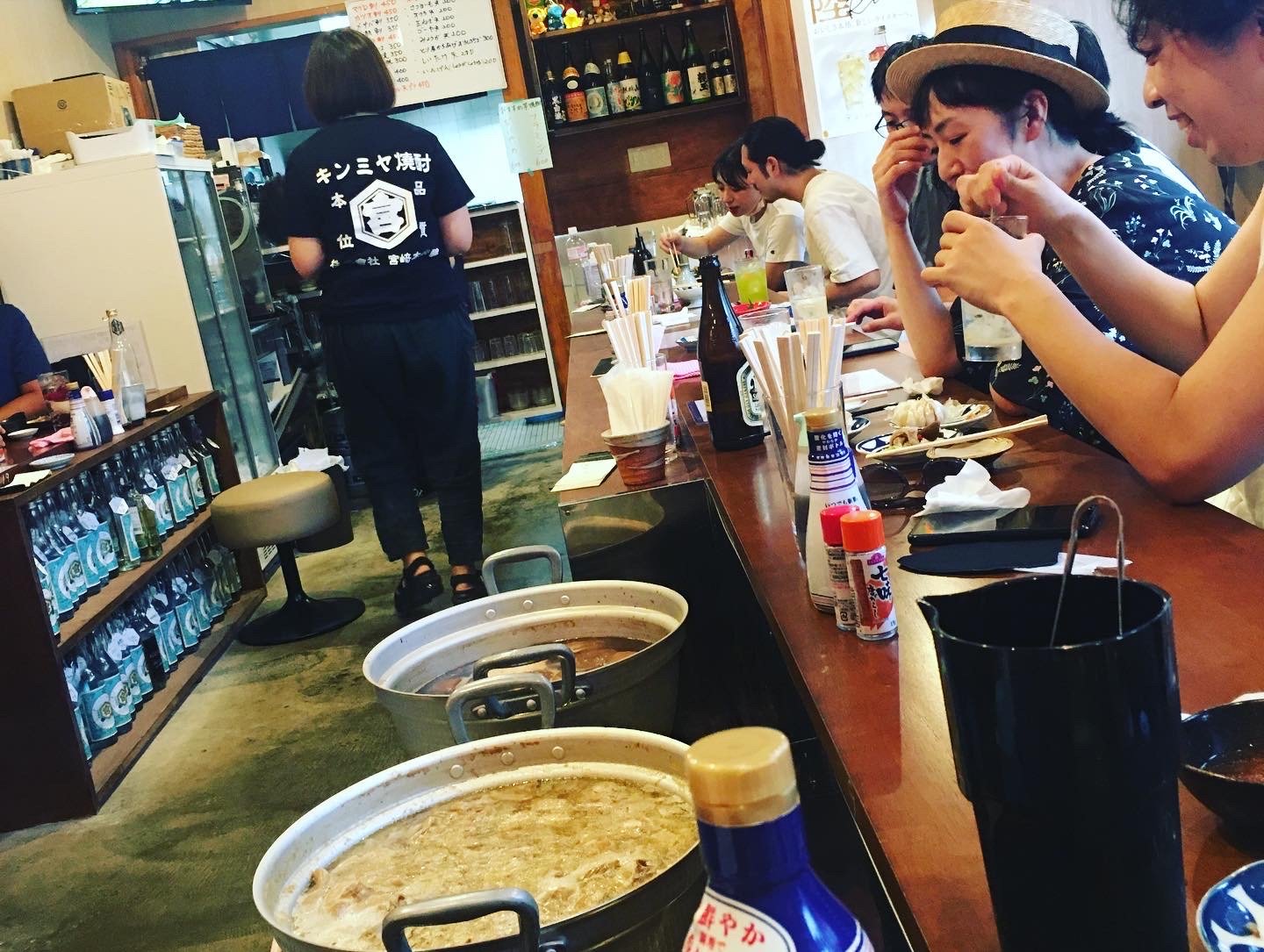 今にも駆け出していきそうな、カリカリに炒められたタコさんウインナー。オムレツみたいなニラ玉、おでん屋よりも味が沁みた大根や玉子、豆腐。カウンター下のボトル棚はキンミヤの水色で満たされている。こんな光景は、北千住の名酒場「大はし」や「藤や」でしか見たことはない。七夕にオープンして、わずか数ヶ月で、14時の開店時には待ちの行列ができるようになった。もはや、近隣の立ち飲み「SAMI」と共に大井町の人気店の仲間入りだ。