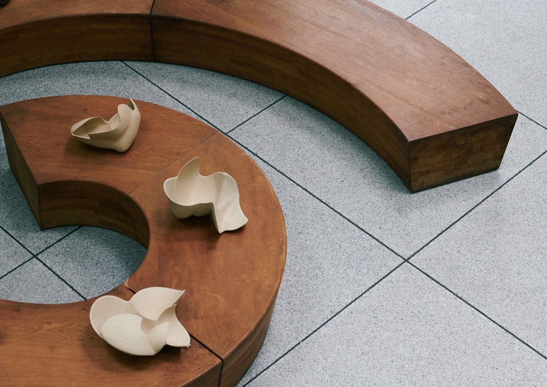作品のモチーフとなるのは、子宮、繭、種子のさやなど自然界のもの。脆弱な生命を包み込み保護するための構造が持つ詩的な象徴性、構造としての説得力、視覚的な美しさ…それらのモチーフを掛け合わせ、抽象化することで生まれた作品には、生き生きとした軽やかさ、力強さ、洗練された美しさが宿っている。