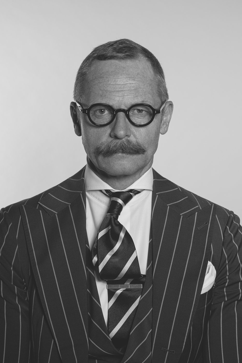 今回のコレクションのシグネチャーアイテムである”HIS PEN"は、ヘミングウェイその人が着想源。作家が執筆している姿や、雰囲気を想像してデザインされた。ウジック・ジョーも長年愛用している万年筆があることから、作家と自分自身を重ねたという。右サイドのテンプルにあしらわれた万年筆のモチーフは、着装時はもちろんジャケットの胸のポケットに掛けたときも、洒落たギミックとして存在感を発揮する。大人のお洒落はディテールにあり。毎日身に着けるものこそ、物語のある一品を選びたい。