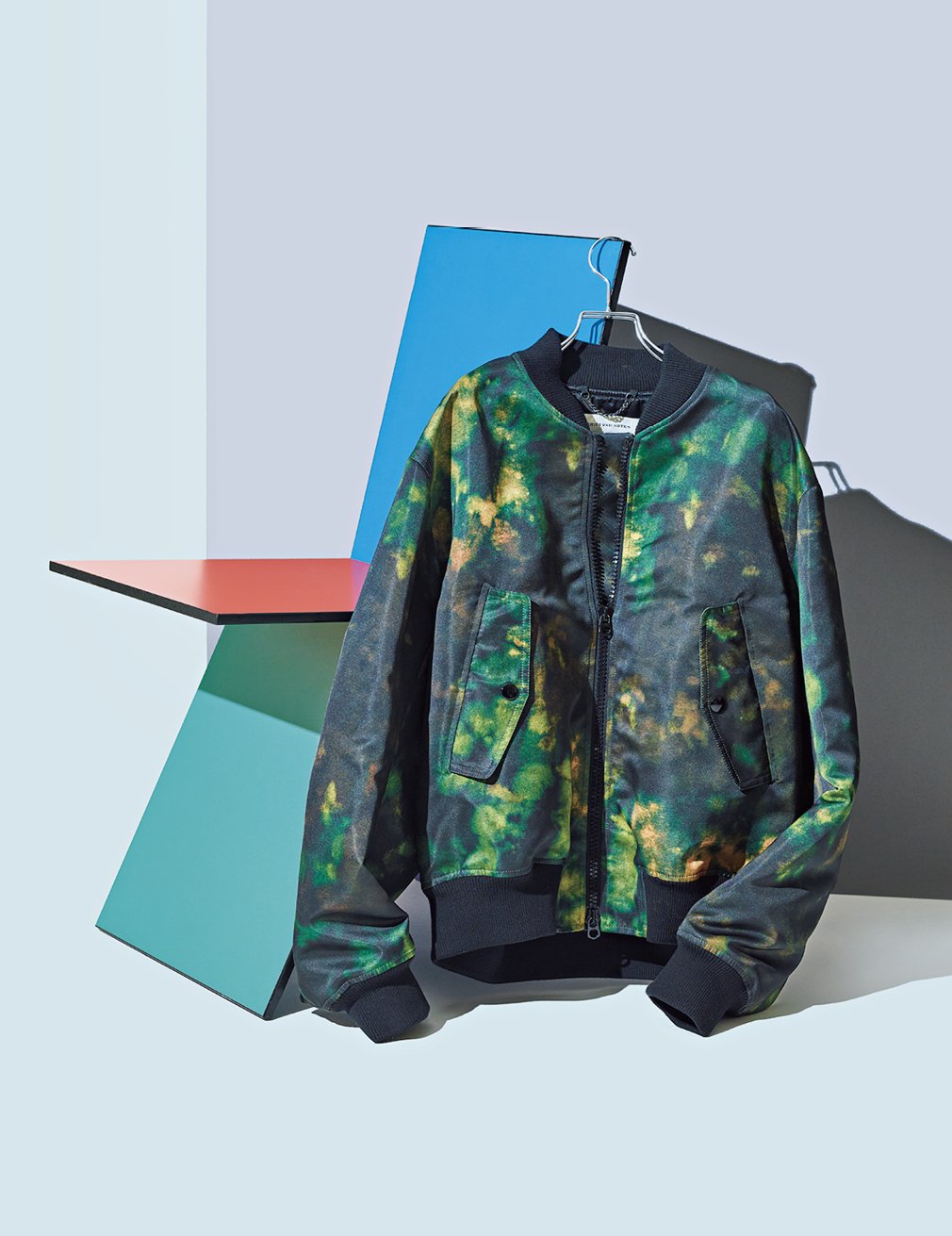 MA-1といえばアメリカの印象が強いが、実はスキンズのメンバーがユニフォーム的に着用していたなど、ロンドンファッションにおいてもアイコン的なアイテムなのだ。「デザイナーのドリス・ヴァン・ノッテンはロンドンファッションに精通する人物であることを考えると、これは80年代ロンドンのファッションにインスピレーションを得たものと考えることができる。ならば足元にはドクターマーチンを合わせてみようか……というふうに考えるのも面白そうです」