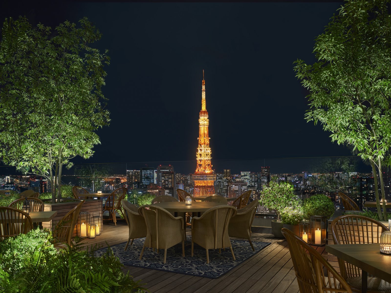 31階にあるホテルロビーに隣接する「The Jade Room + Garden Terrace」は、英国出身のスターシェフ トム・エイキンズ氏による日本初出店のレストランで、東京タワーと都会の大パノラマを眺めながらコンテンポラリーな和と洋のコラボレーション料理を楽しめる。