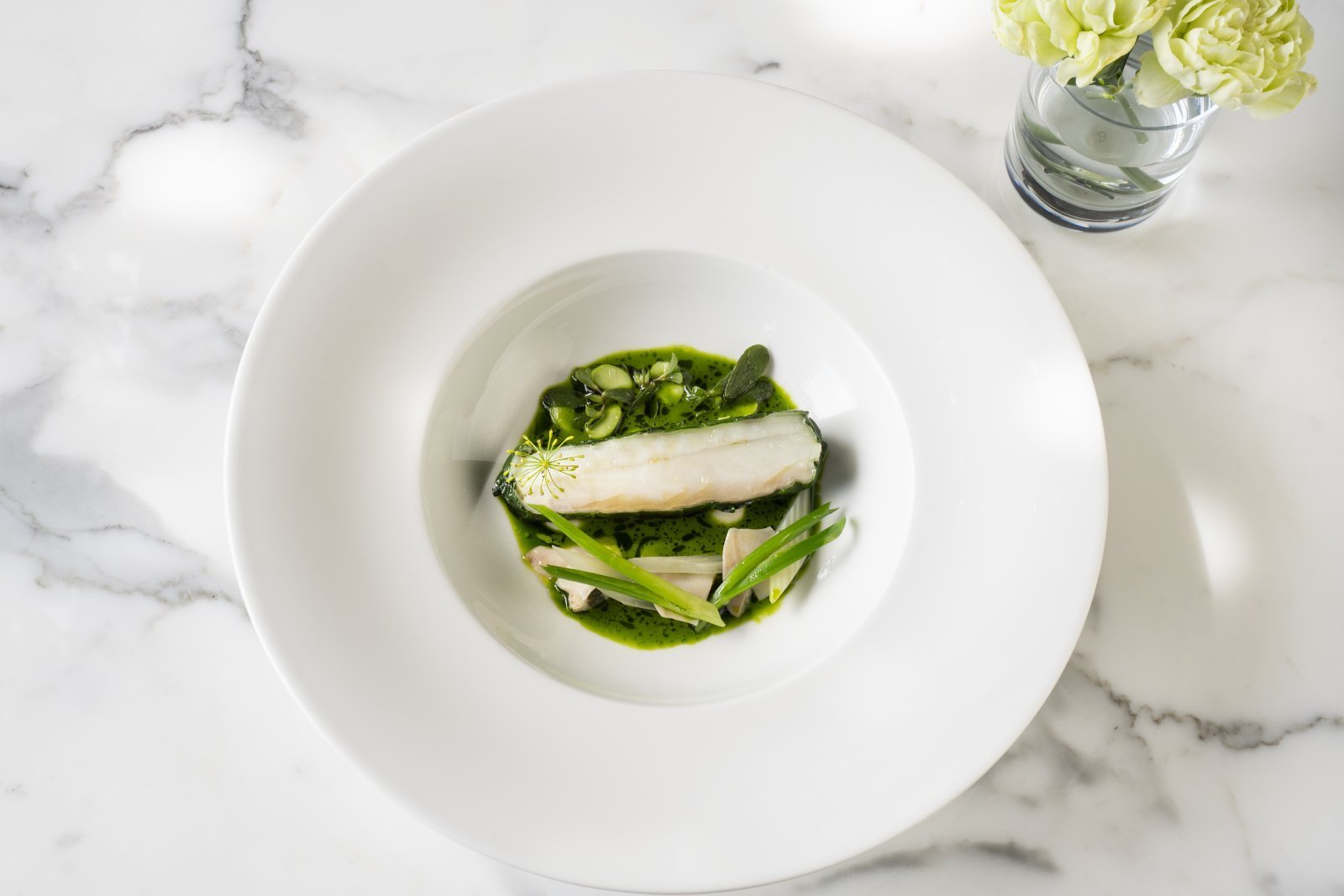 食事は、トム・エイキンズ氏が生み出す革新的な料理を4皿または6皿コースで楽しめる。“今のイギリスの最先端”という彩り豊かなメニューは、これまで体験したことのないような食材の組み合わせやプレゼンテーションに驚きと発見が次から次へと続いていく。ソムリエによるワインペアリングも圧巻だ。珍しい英国のスパークリングに始まり、世界のさまざまな国からセレクトされたワインと料理のマリアージュで新たな食体験を味わえる。