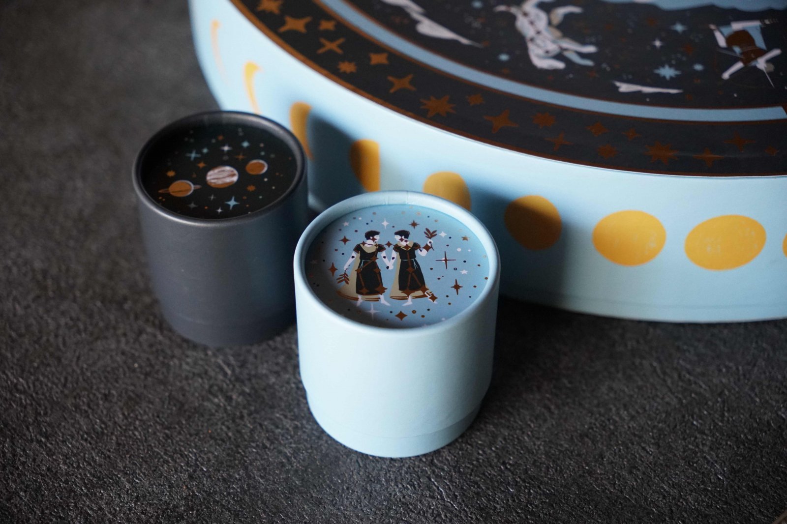 クリスマスまでの25日間、それぞれの日にちにある星座や天体現象に合わせて、日本各地から集結したクラフトチョコレートのメーカーたちが趣向を凝らして考案したオリジナルチョコレートスイーツを楽しむことができる。昨年から新たに5社のチョコレートメーカーが参加し、北海道から鹿児島まで25メーカー25種類の個性あふれるチョコレート菓子が入っている。どのメーカーが何日に入っているかは、当日開けてのお楽しみ。