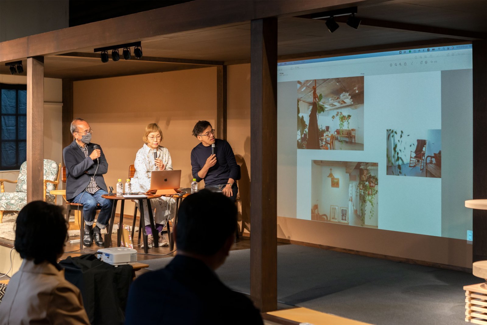 ⾼⼭店のオープニングイベントとして、⿅児島睦と、設計事務所imaの⼩林恭、⼩林マナによるトーク&ライブペインティングが開催された。