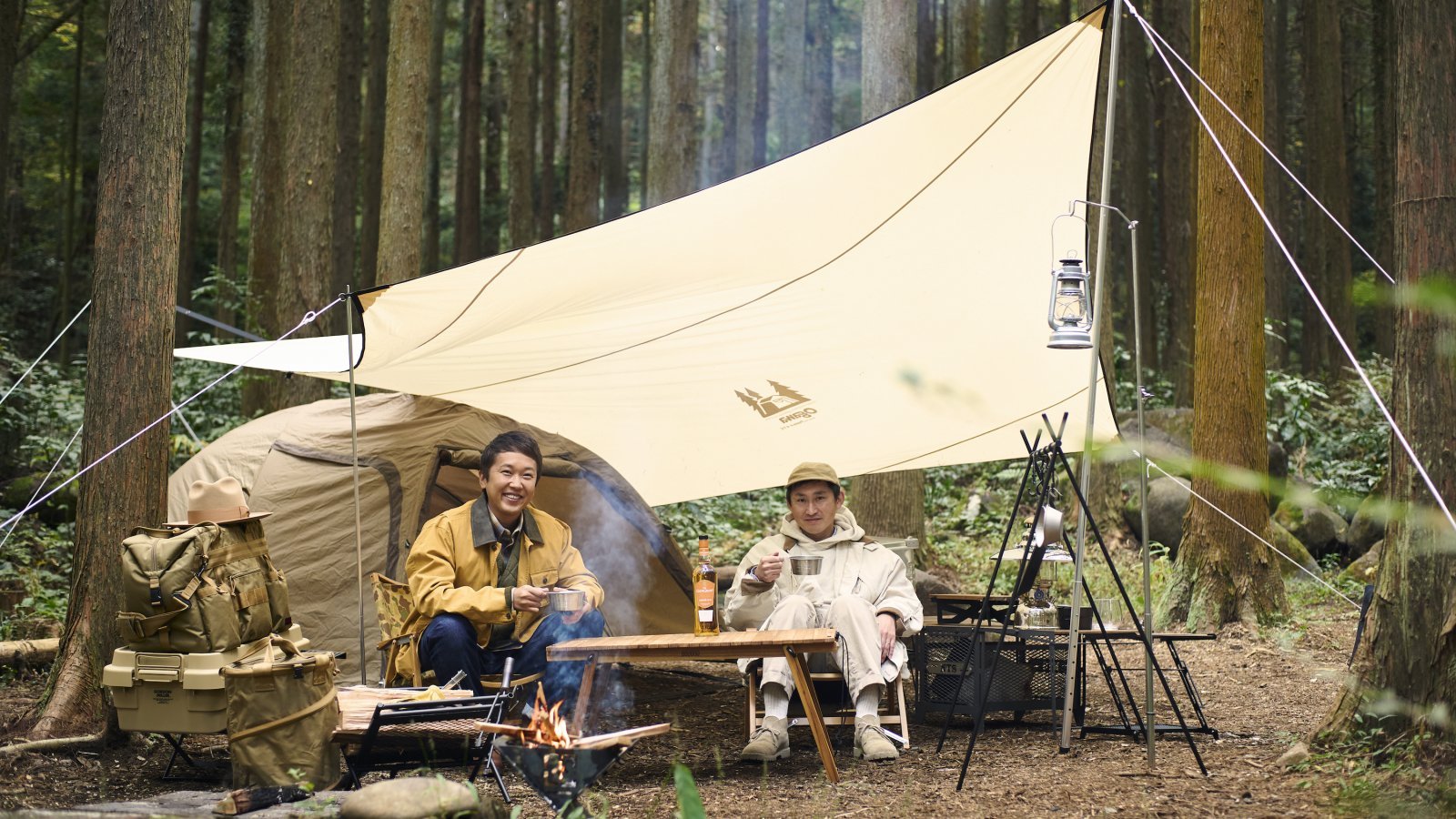 キャンプに釣り、そして登山。「自然に触れていないと生きていけない」と語るほどのアウトドア愛好家である、俳優の金子貴俊。そして、日本のさまざまな文化を紹介する「BEAMS JAPAN」のディレクター/バイヤーとして日々、日本各地を巡っている鈴木修司。木漏れ日が差し込むキャンプサイトで、シングルモルトウイスキー「グレングラント」を楽しみ、語らいの時を過ごす。