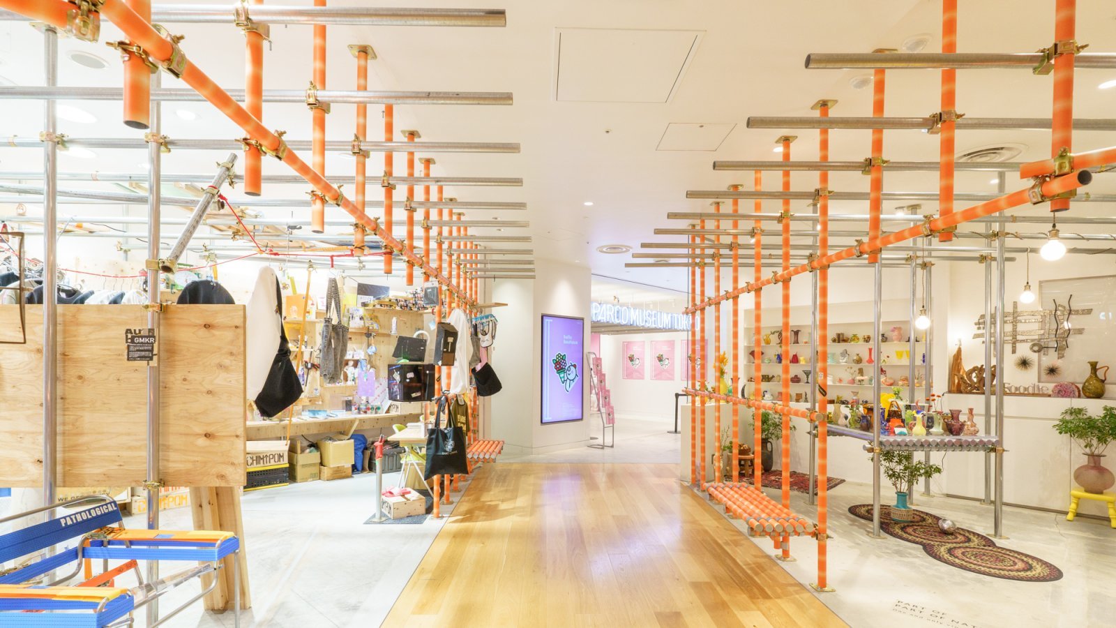 渋谷パルコが独自の構成を行うエリアは、建築分野で話題を呼ぶ「SKWAT」がデザインを手掛けている。施工途中で止めた工事現場のような構造はSKWATの作風であり、拡張や撤収しやすさにも大きな役割を果たしている。