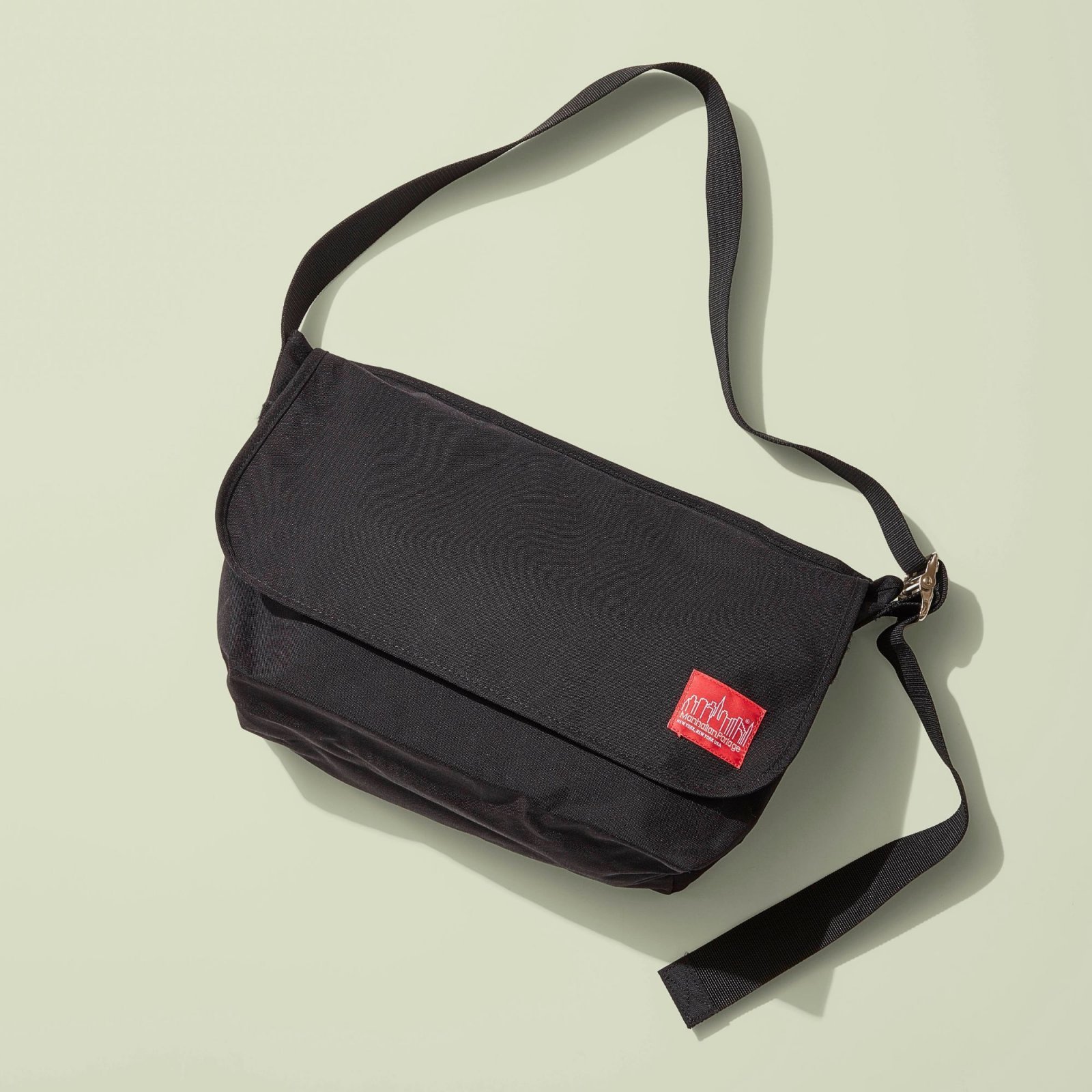 今回紹介するメッセンジャーバッグはニューヨークで1983年に誕生したバッグブランド、マンハッタンポーテージ(Manhattan Portage)の製品。ニューヨーク摩天楼のスカイラインをグラフィックに表現した赤のブランドロゴに象徴されるように、マンハッタンポーテージはブランド設立から現在に至るまで、ルーツであるニューヨークスタイルを踏襲するバッグ(プロダクト)を生み出してきた。もちろんメッセンジャーバッグはその基本となるものだ。当初デ・マルティーニがデザインしたバッグは素材に帆布を用いていたが、メッセンジャーバッグにコーデュラ・ナイロンという素材を初めて採用したのはこのマンハッタンポーテージと言われている。