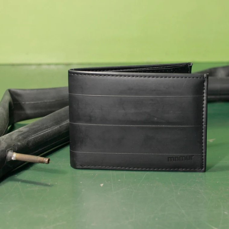 イタリア全土を舞台にして行われる自転車のロードレース、ジロ・デ・イタリアも開催される自転車大国から、自転車のタイヤチューブをリサイクルした商品が生まれた。つくったのは、トリノを拠点とするハンドメイド工房ミニマー。廃棄されるタイヤチューブから製品として利用可能な部分を選んで洗浄した後、財布やポーチなどにアップサイクル。タイヤチューブはもともと高い耐久性や防水性があり、かつ軽量。バッグや財布をつくる上でも理想的な素材なのだ。プリントされたロゴや文字はそのままデザインとして使用されており、それもまた個性に。イタリアを走っていた自転車のタイヤが手中にあると思うとどこか楽しい。