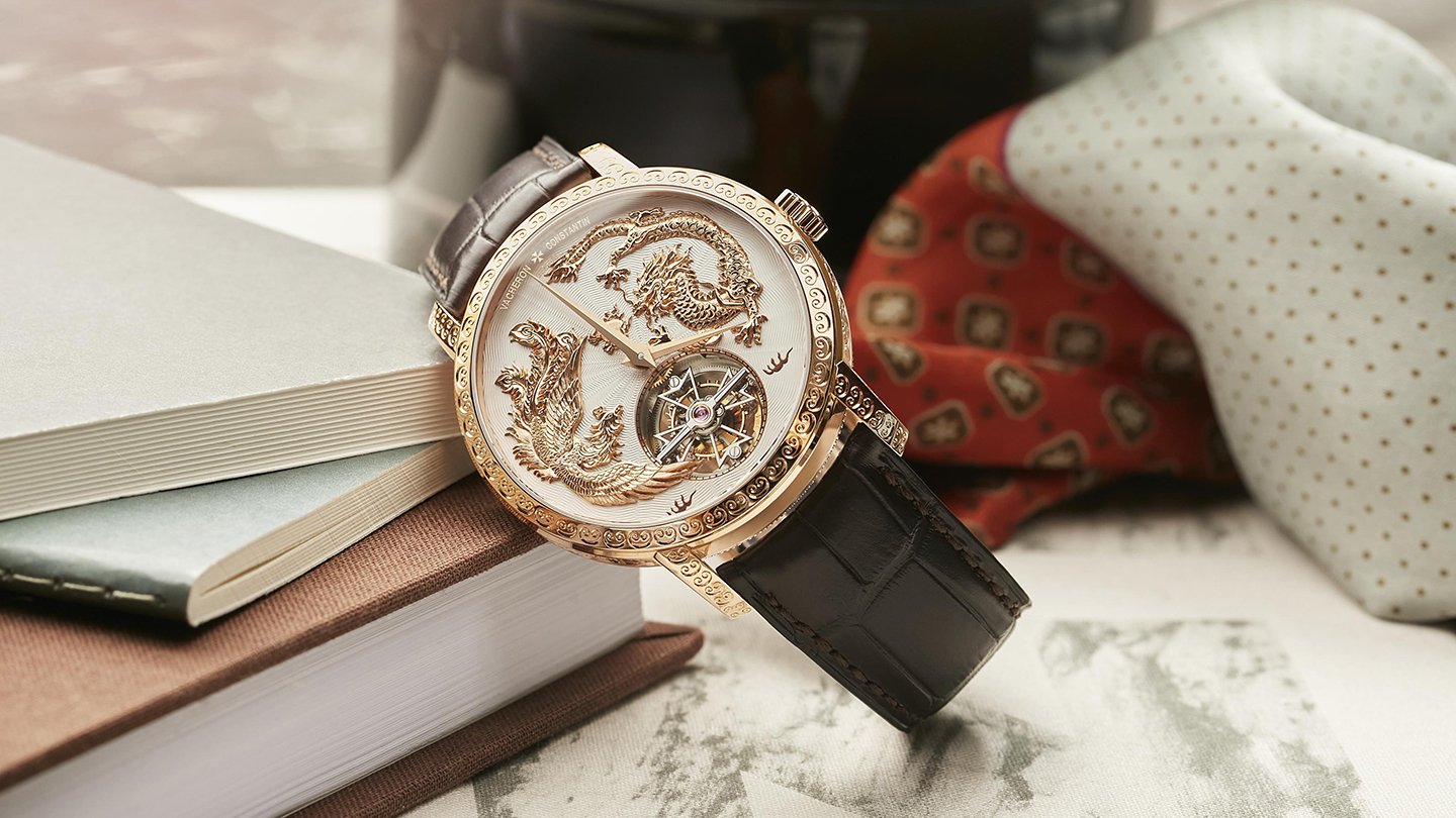 中国には「龍が舞い、鳳凰が踊れば、民は末永く幸福を享受し、天下にあまねく平和と平穏が訪れる」という言葉がある。太古から中国文化と密接に結びつき、輝かしい時代の前兆として崇拝され愛好されてきた伝説的な生き物、龍と鳳凰を時計のダイヤル上で立体的に表現したのが、ヴァシュロン・コンスタンタンの新作「トラディショナル・トゥールビヨン」だ。