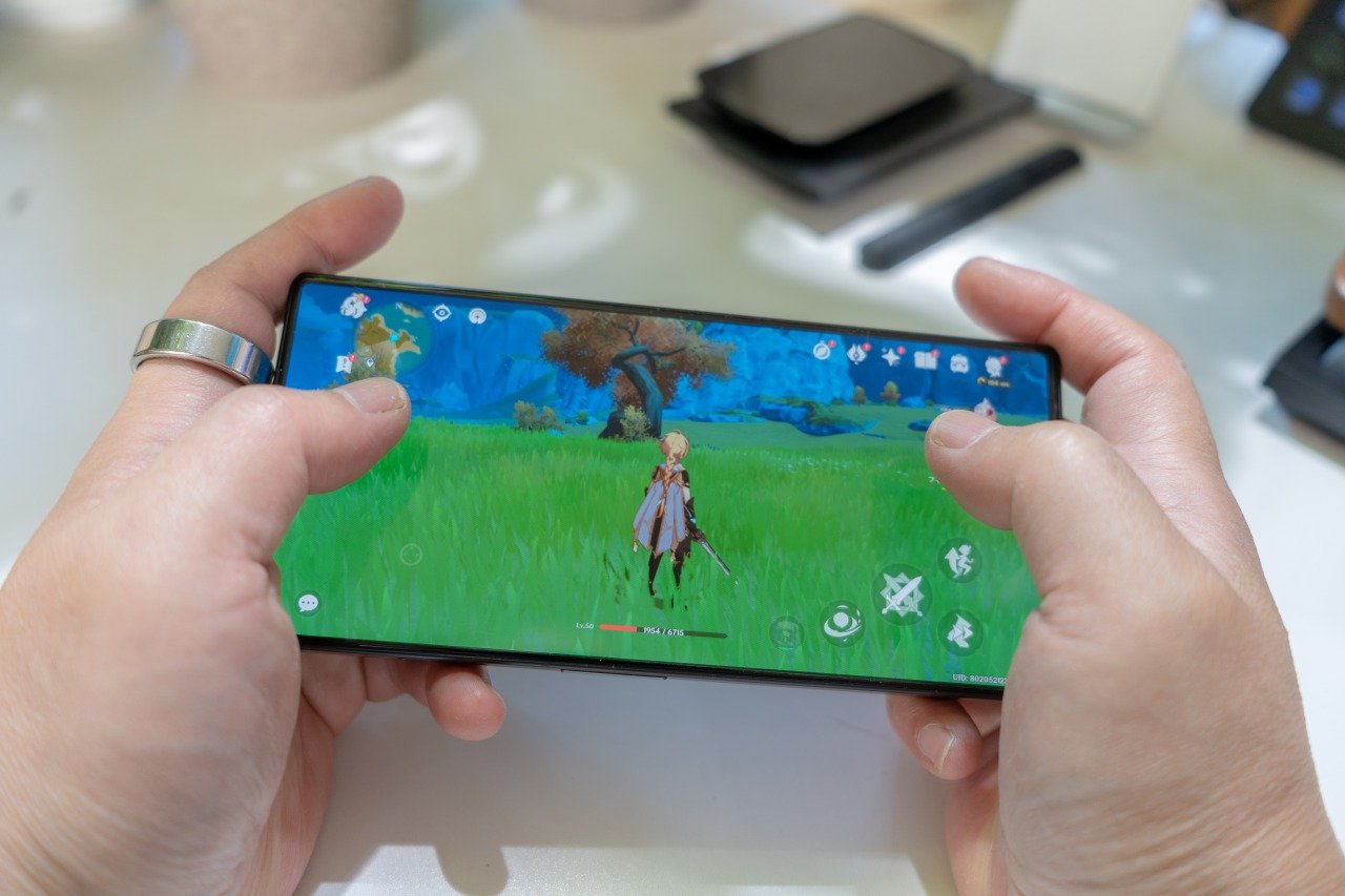 ディスプレイは6.8インチのAMOLEDで解像度は2480x1115ピクセル。リフレッシュレートは最大120Hz、最大輝度は1300ニトで屋外でも画面を見やすく、どこでもゲームプレイが可能だ。また、タッチ操作の感度をあらわすタッチサンプリングレートは最大960Hzに対応。これだけ感度が高いと、ゲーム中のタッチ操作の取りこぼしを気にする必要はないだろう。
