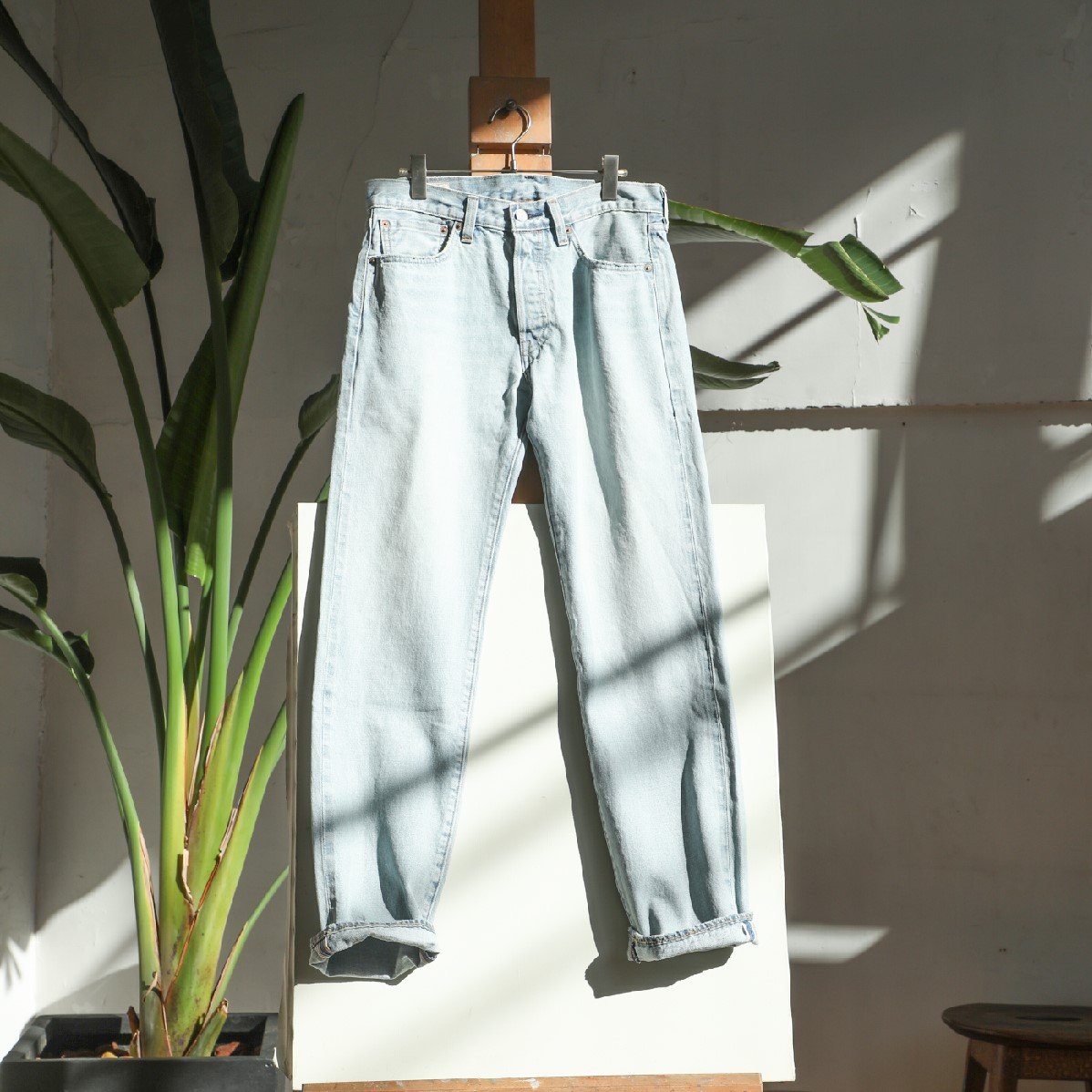 デニムを今季のトレンドに合わせて履くなら、いなたいようなアイスブルーを選びたい。そんな色みで美しくテーパードしたシルエットのものを、名品の記念モデルから人気ブランドの1本まで集めてみた。