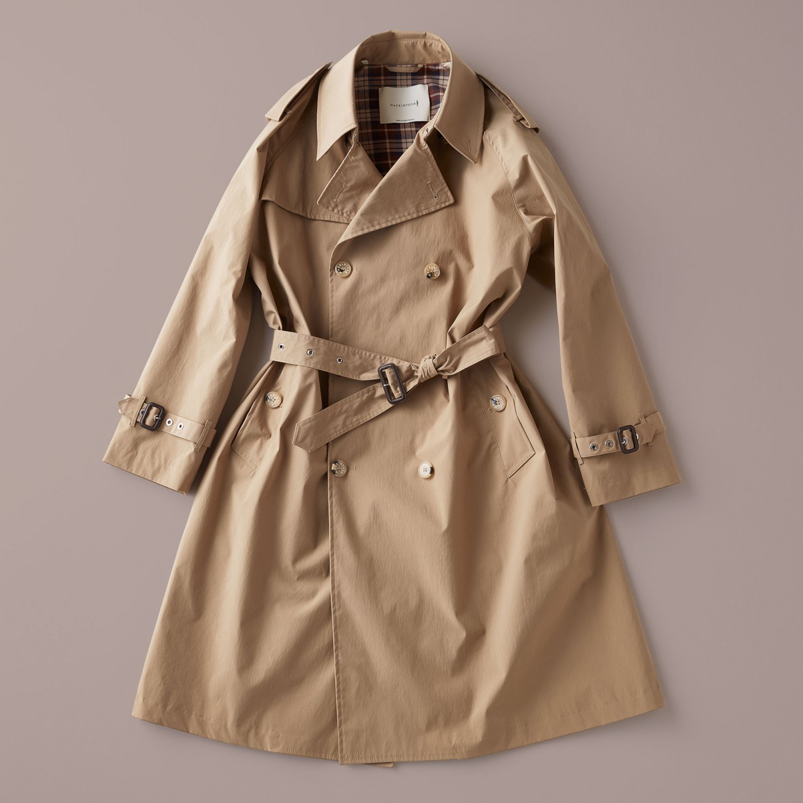 今回紹介するトレンチコートは、1823年にイギリスで創業されたマッキントッシュの新作。2枚の布の間に溶かした天然ゴムを塗り、圧着して熱を加えた「ゴム引き」の防水布を発明し、瞬く間に有名になった老舗だ。イギリスだけでなく日本でも高い知名度を誇る人気ブランドで、「マッキントッシュ(MACKINTOSH)」という言葉はマッキントッシュの生地や、同社の生地を使ったコートを指す言葉としても使われることがあるほど。