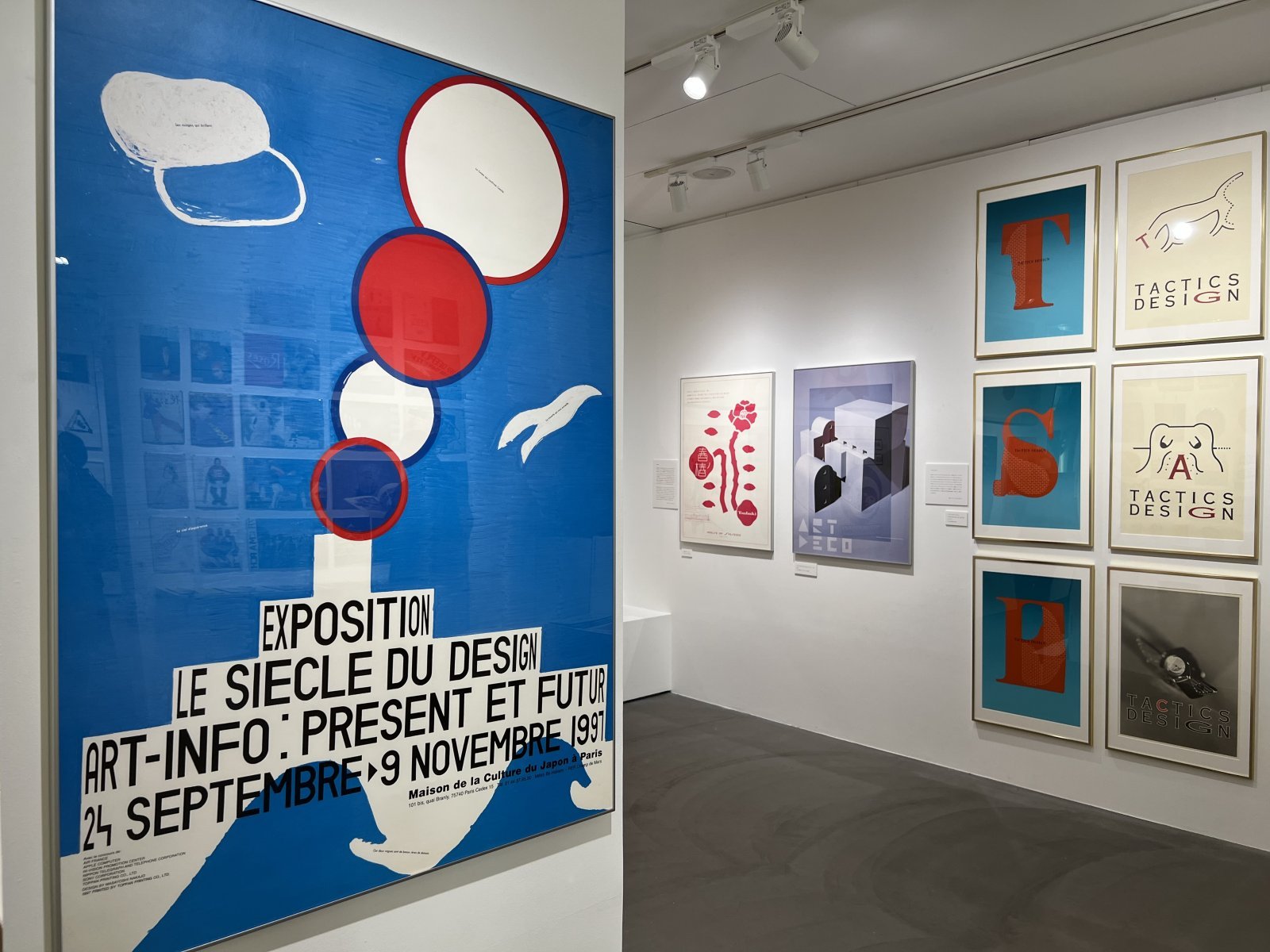 「はじめデザインは詩だと思った。中年で移ろいと思い、今は妄想である。」と作品集『仲條 NAKAJO』(2021年)に記した仲條。会場の随所のパネルにて紹介され、過去の出版物より引用された仲條の文章にも注目したい。資生堂時代のエピソードをはじめ、『花椿』やタクティクスデザインでの出来事について語られるとともに、仲條の仕事の核心ともいえる文字やデザインの在り方などについても言及されている。そこからは時代への鋭い感性を反映しながら、アヴァンギャルドでかつ“謎解き”が潜んでいるようなデザインのインスピレーションの源泉を伺い知れる。