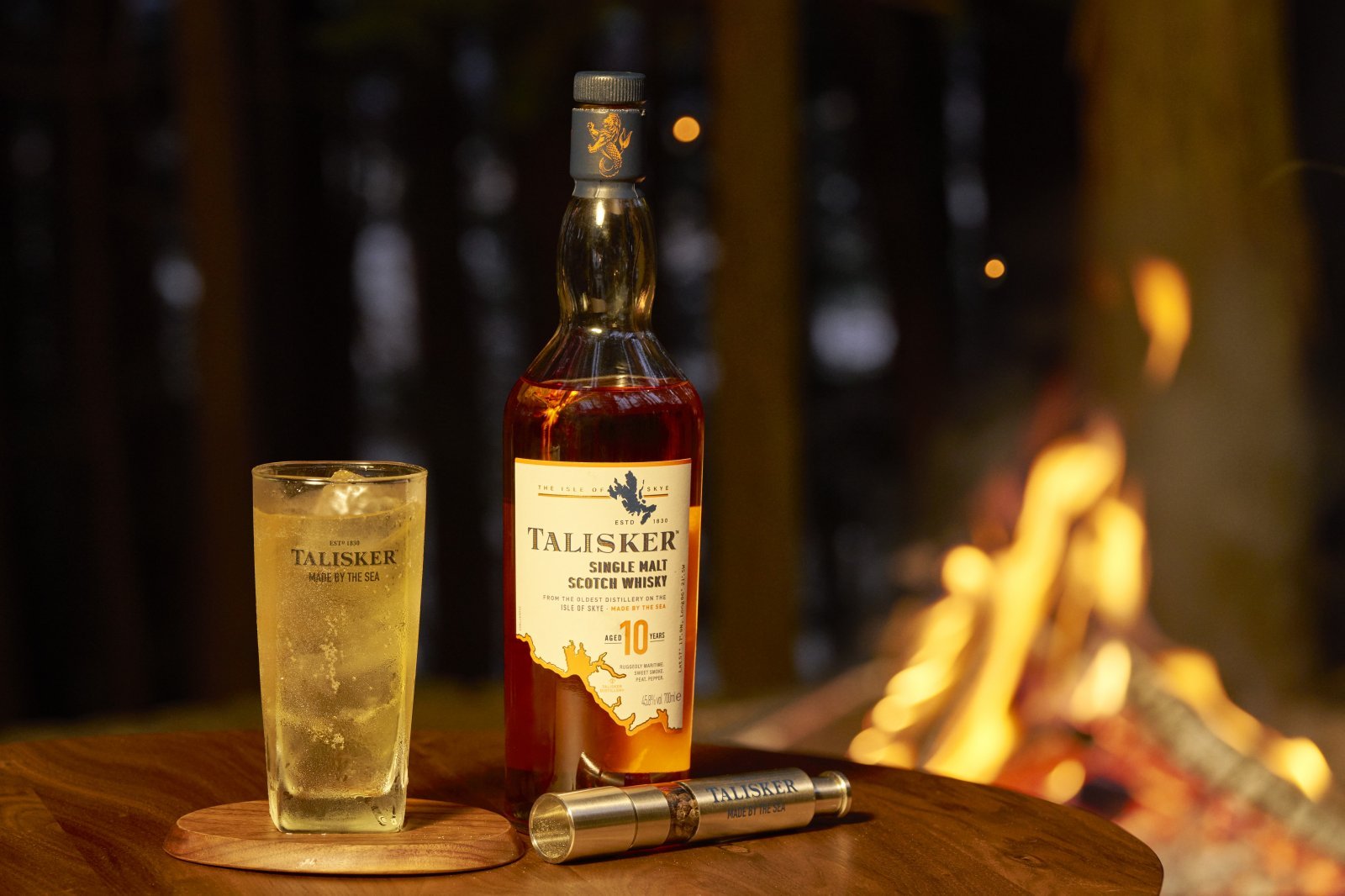 「ミストアイランド(霧の島)」と呼ばれる、厳しい海洋性気候の島で生まれたタリスカー。厳しくも美しい自然と海に育まれたその個性と向き合うのなら、やはり自然の中に身を置くことが、なによりの作法と言えるだろう。木々に囲まれた星のや富士のフォレストキッチンでは、総料理長の須川正大が、桐島のために「タリスカー 10年」の個性を引き立てる特別メニューを披露。贅を尽くした大人のグランピングには、直火で焼き上げた肉料理と、上質なハイボールが欠かせない。
