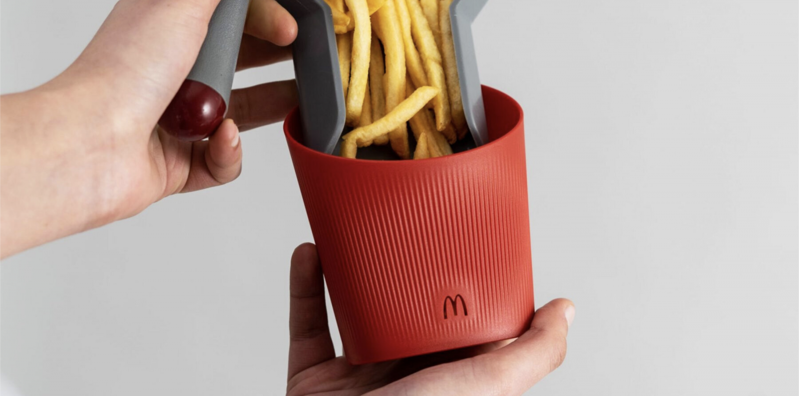 デザインチームは2年がかりで、マクドナルドの常連客が飲食する際に使用する、ありとあらゆるテーブルウェアを手がけた。たとえばフライドポテト用コンテナの表面にあるギザギザなど、ディテールまで徹底してこだわった。それと同時に、客がマクドナルドのメニューを味わう時の体験や、テーブルウェアを手にした時の感触を向上させるべく、形状や素材に配慮した。