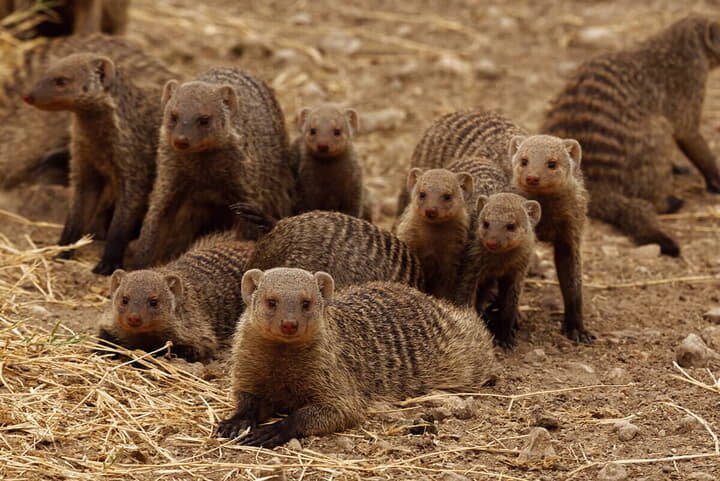 スミソニアン国立動物園・保全生物学研究所によると、シママングースは猫くらいの大きさで体長は30〜45センチ、尻尾は15〜30センチというところ。主食はヤスデや甲虫などの昆虫だが、鳥、卵、カタツムリ、果物、さらにはヘビまで食べる雑食性だ。