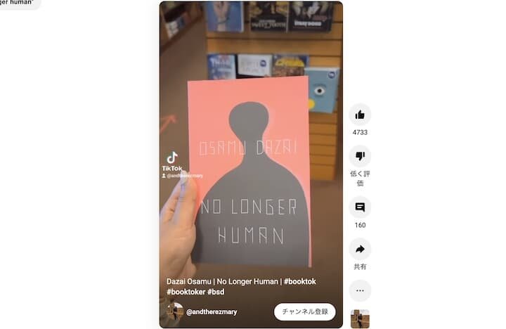 少し前から海外では、「#BookTok」が人気のタグとなっている。読書に興じている日常のワンシーンや、おすすめの小説などを紹介する動画が視聴者の興味を惹いてきた。読書離れが叫ばれる現在、出版界や書店の希望の光となっている。太宰作品もこの#BookTokの流れにうまく乗ったようだ。