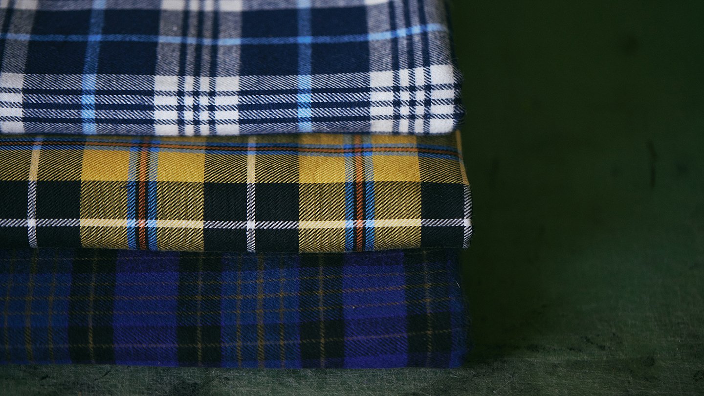 経糸と緯糸を組み合わせ、 染め上げられた糸を織り上げることで、糸が布になる。そして、どのように組み合わせるか、どれくらいの密度で色を配置するか、その繊細なバランスのなかから播州織を特徴づける美しい柄が浮かび上がる。
