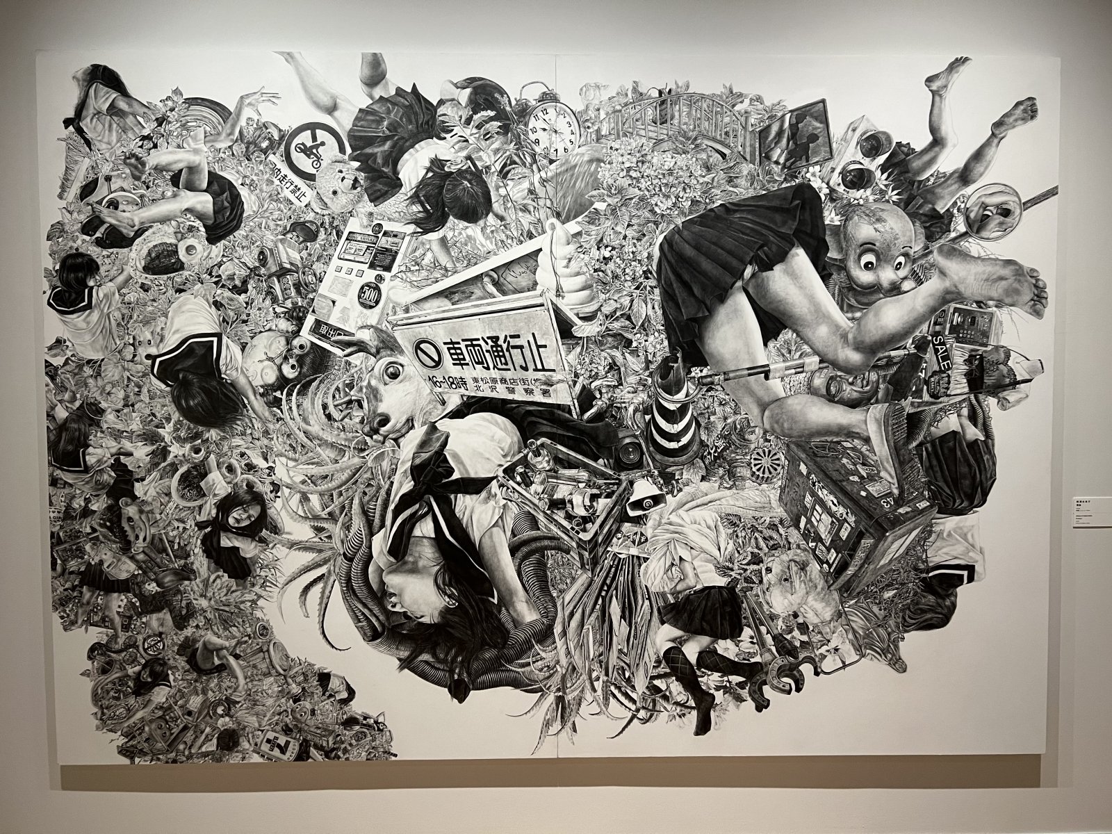 高度な技術や手法を意味する「超絶技巧」をテーマとする展示も見逃せない。このうち山口英紀は『動脈』において、ビルの合間を高速道路が走る都市風景を水墨にて描出。写真かと見間違うほどに精緻な表現に思わずため息が出てしまう。また江戸時代の九谷焼の赤絵の技術を用いつつ、アラベスクや中世のヨーロッパを思わせる幾何学模様を表した見附正康の作品も細やかだ。「ただ心が熱く動く、好きな作品を買ってきた。」とする高橋。しかしそこには「日本文化の結晶であり、人間の心の本質であり、今の社会の姿」があったとも述べている。日本の現代アートのDNAと最前線をWHAT MUSEUMにて体感したい。