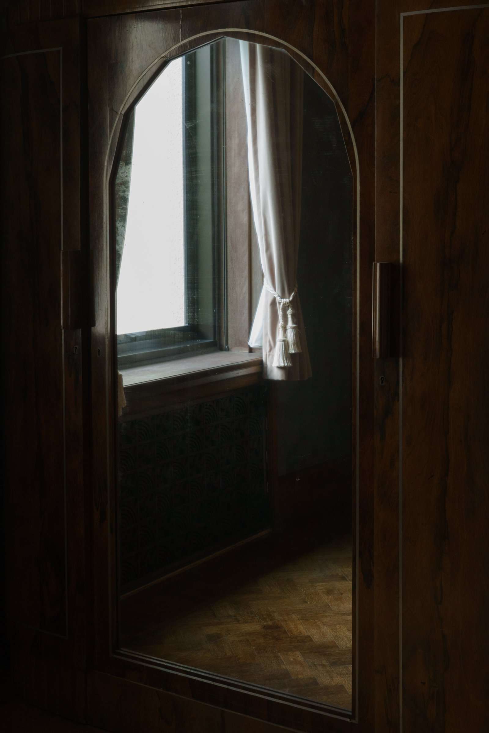 外の光を透かして平らなガラス面にぼんやりと浮かび、表から眺める以上の美しさを感じました。