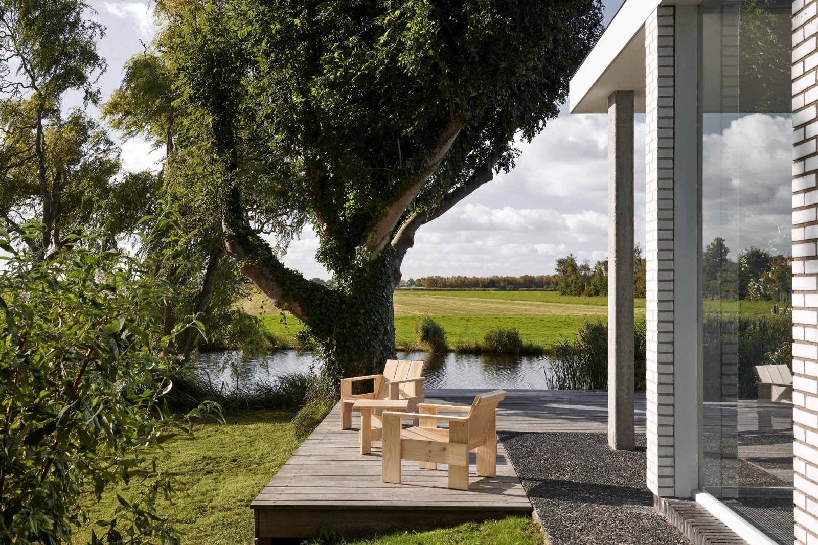 オランダの建築家でデザイナーのヘリット・リートフェルトが、余った輸送用木箱を活用すべく1934年にデザインしたコレクション。今回Rietveld Originals社とHAYのコラボレーションによって復刻された。緩やかに傾いた背もたれ、座面、アームレストからなる低めのデザインが特徴のチェアは、無垢のパイン材をさまざまな色の水性ラッカーで仕上げ、屋外での使用に最適。
